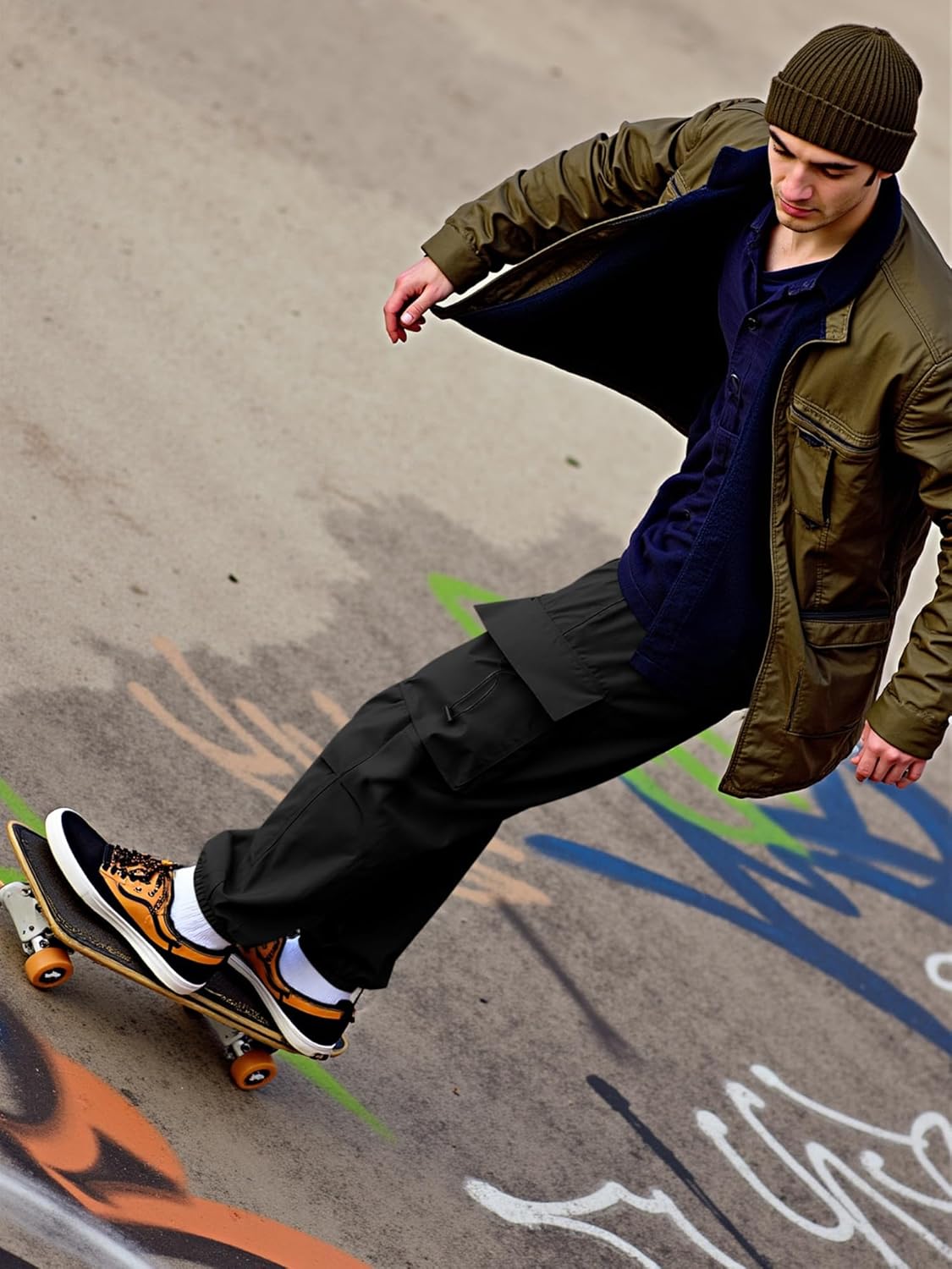 Streetwear in Motion: Multi-Model Showcase of Baggy Parachute Joggers