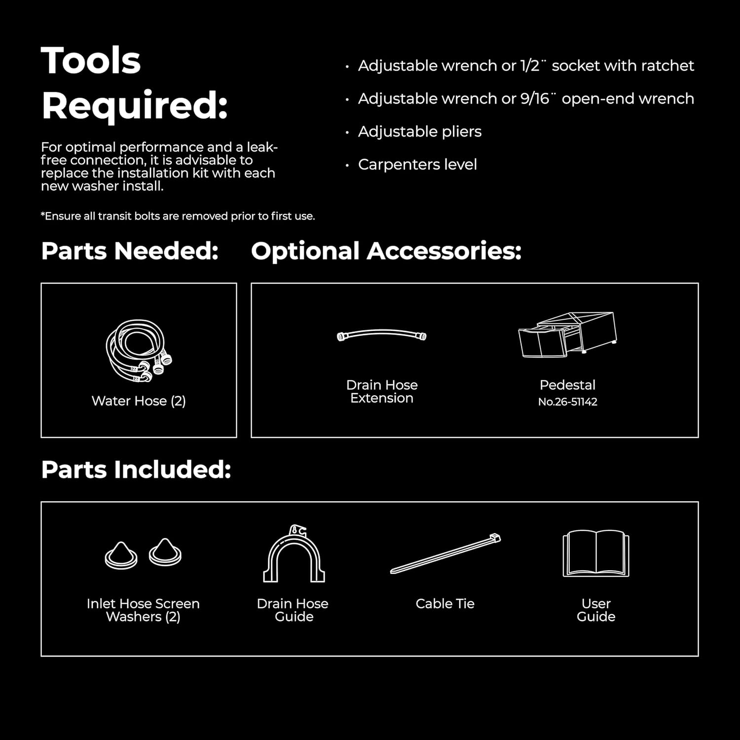 ‎Instruction Manual, Filter (2), Drain Hose Guide, and Cable Tie |