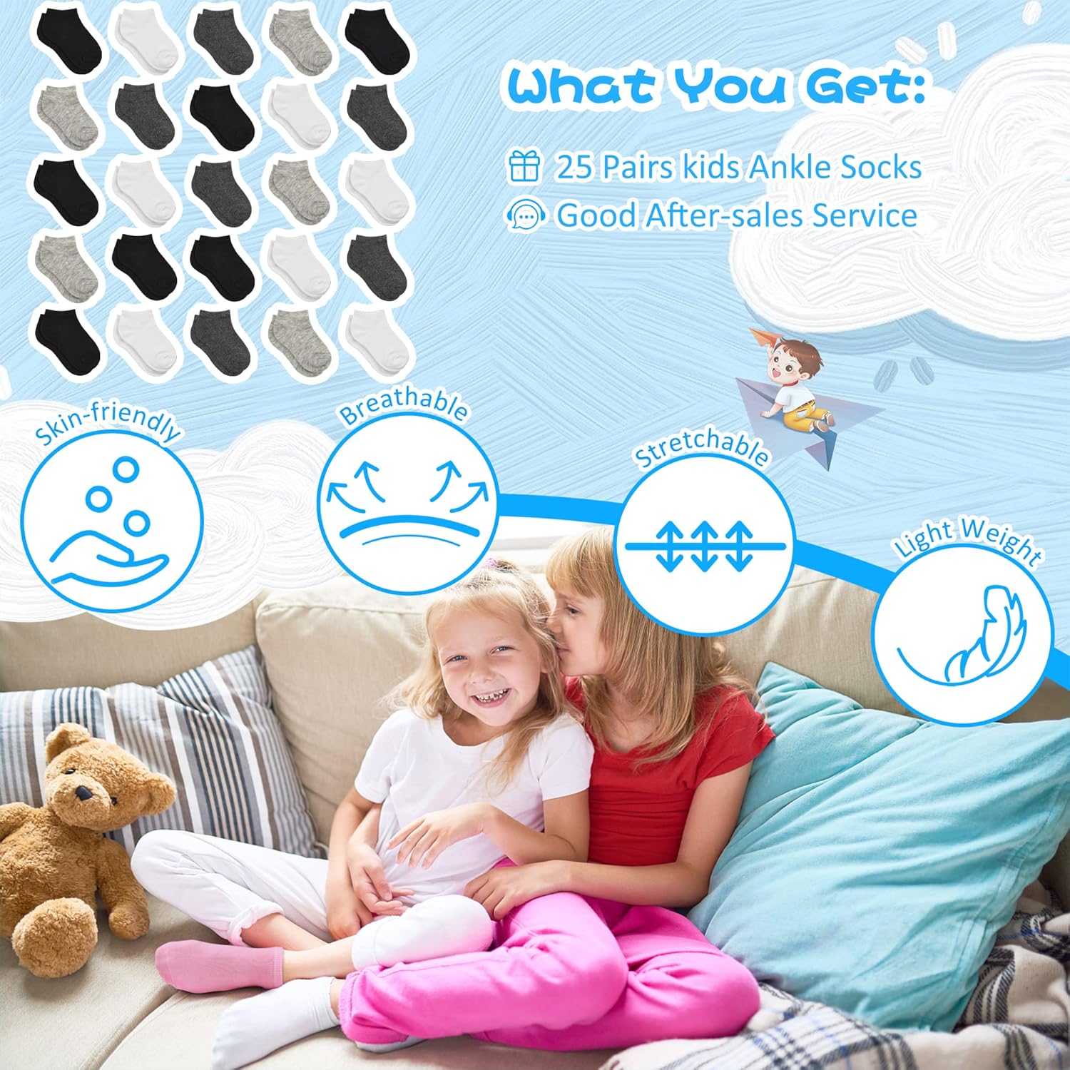 Kids Socks – 25 Pairs Toddler Ankle Socks Set, Low Cut for Boys & Girls (0-14 Years Old)