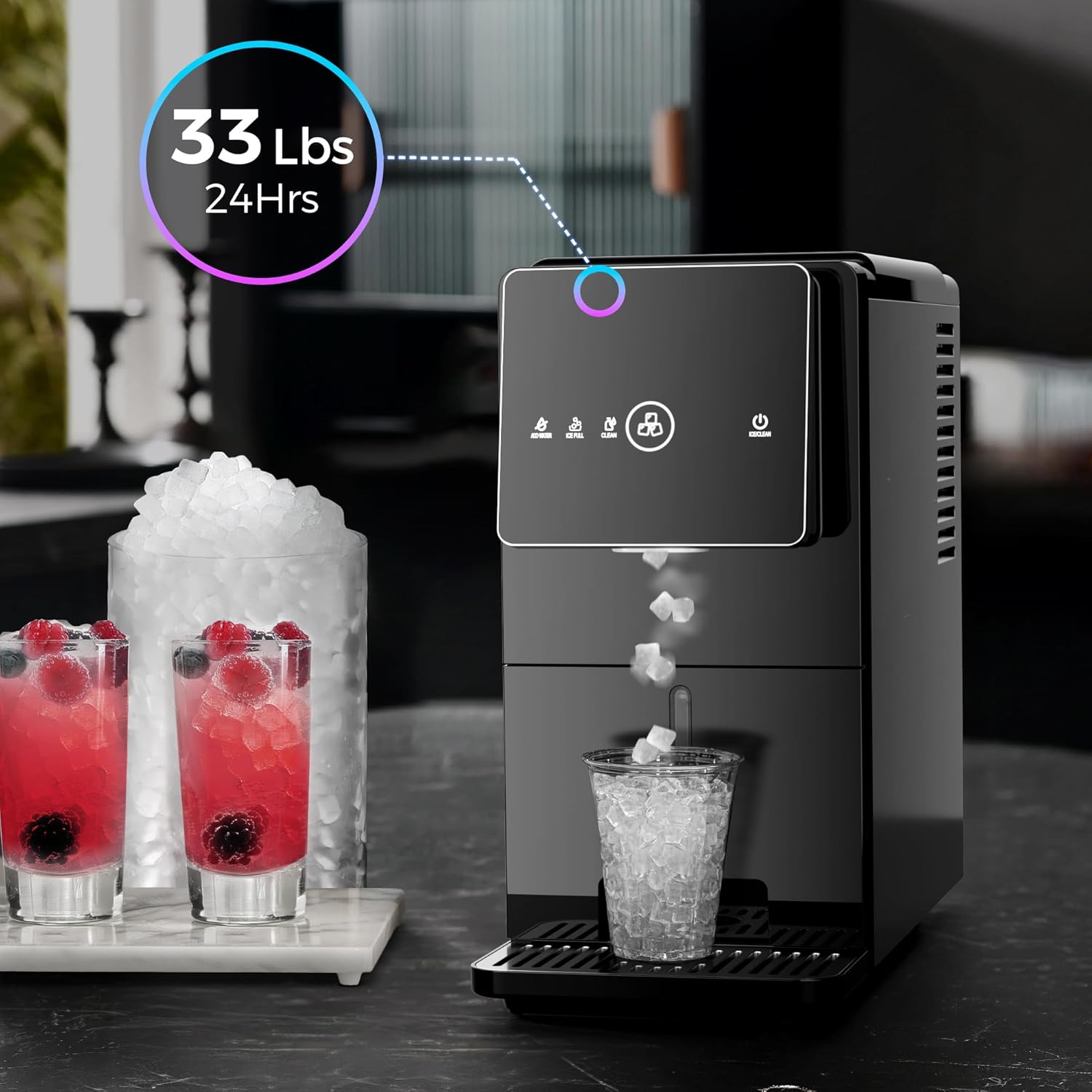 【Chewable Ice, Daily Drinks】Enjoy chewable extruded ice cubes for smoothies, cocktails, iced coffee, or water. Suitable for home or office, this ice maker for home delivers refreshing ice that’ s fun to enjoy, standing out among modern ice makers countertop options.