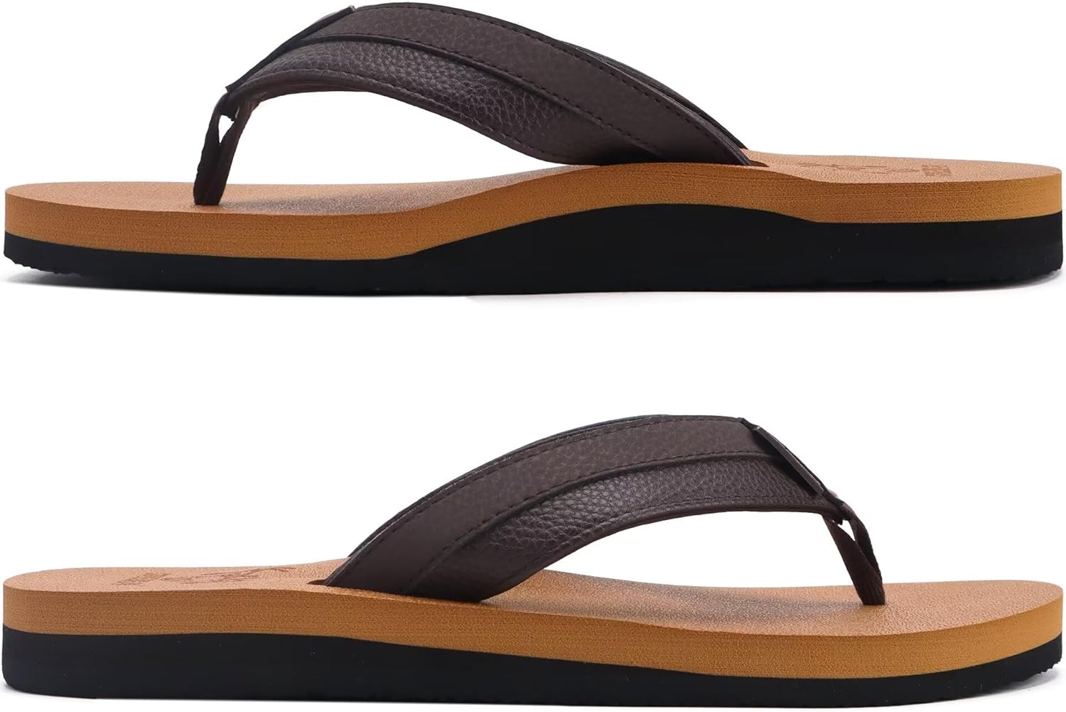 KuaiLu Men’s Yoga Mat Leather Flip Flops with Arch Support Comfortable Cushion Walking Thong Sandals Slip On Indoor Outdoor