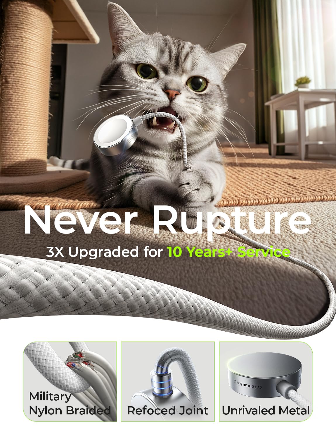 MILITARY-GRADE DURABILITY & TANGLE-FREE DESIGN: Laboratory-tested braided iwatch apple watch magnetic fast charger cable withstands 40,000+ bends (30x ordinary cables) with laser-welded connectors supporting 175lbs tensile strength. Unlike plastic apple watch cables that tangle easily, our 48-braid design prevents knots and twists for tangle-free daily use. The fast apple watch ultra charger cable slides smoothly in and out of bags without snagging. Special SR joint design ensures exceptional longevity and reliability.