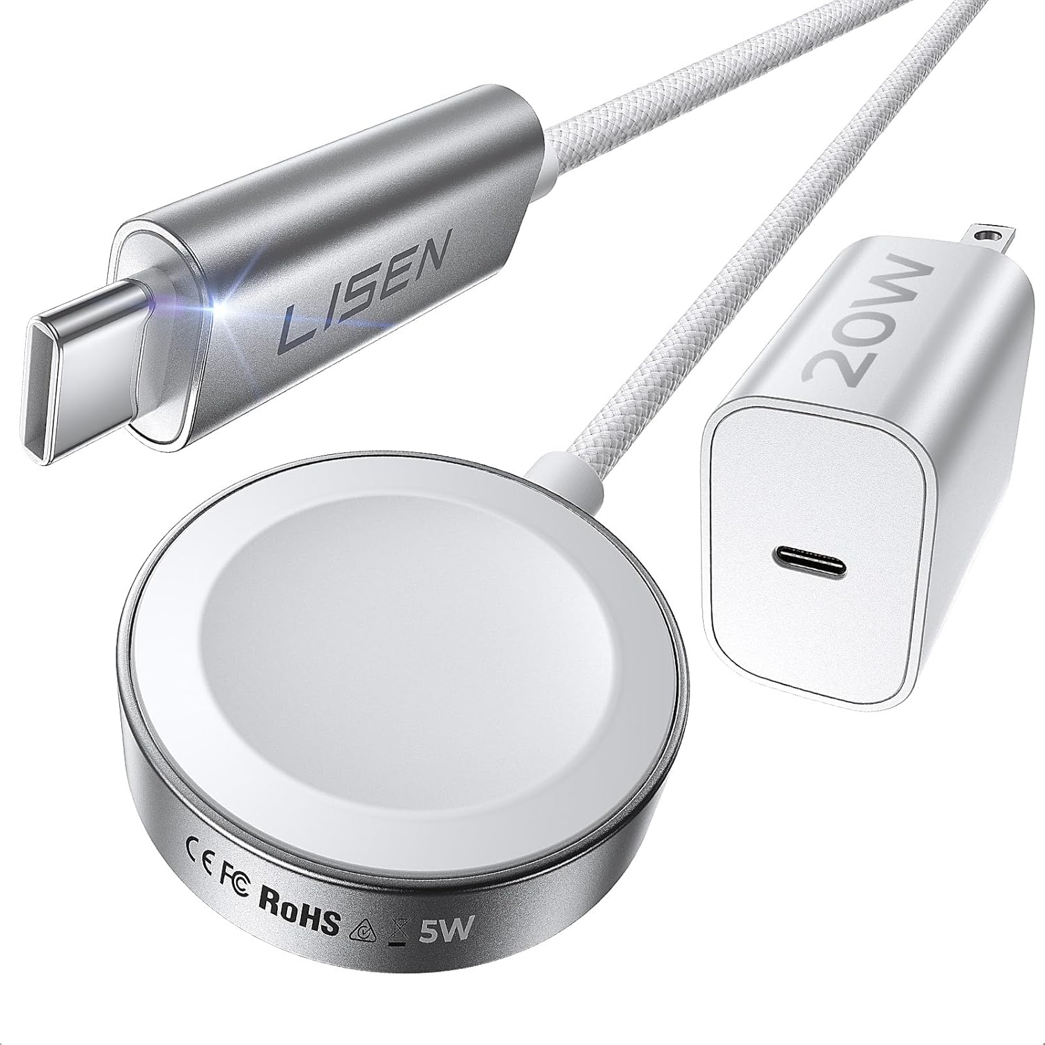 WHAT YOU GET: LISEN 5W Fast Apple Watch charger 3.3FT(only for apple watch), 20W USB-C power block(support for charging apple watch and phone), 18-month warranty, and dedicated customer support. Everything you need for fast, reliable charging anywhere. Perfect apple watch accessories gift for women men.
