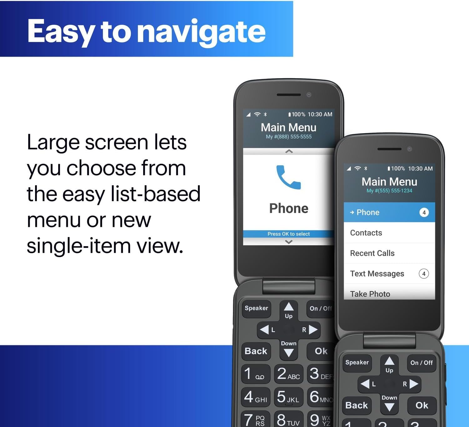 Easy-to-Use Flip Phone: The Jitterbug Flip2 flip phone features a pre-installed SIM card, large screen, big buttons, powerful speaker, simple list-based menu and one-touch speed dial