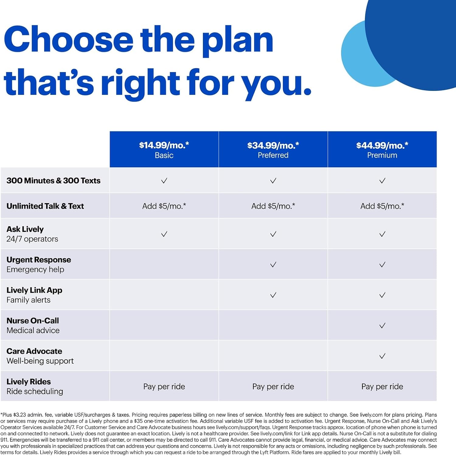 Help When You Need It: Once your new phone is activated with Lively, the Lively team is here to help if you want to learn more about your phone, need a ride, have a health concern, or an emergency