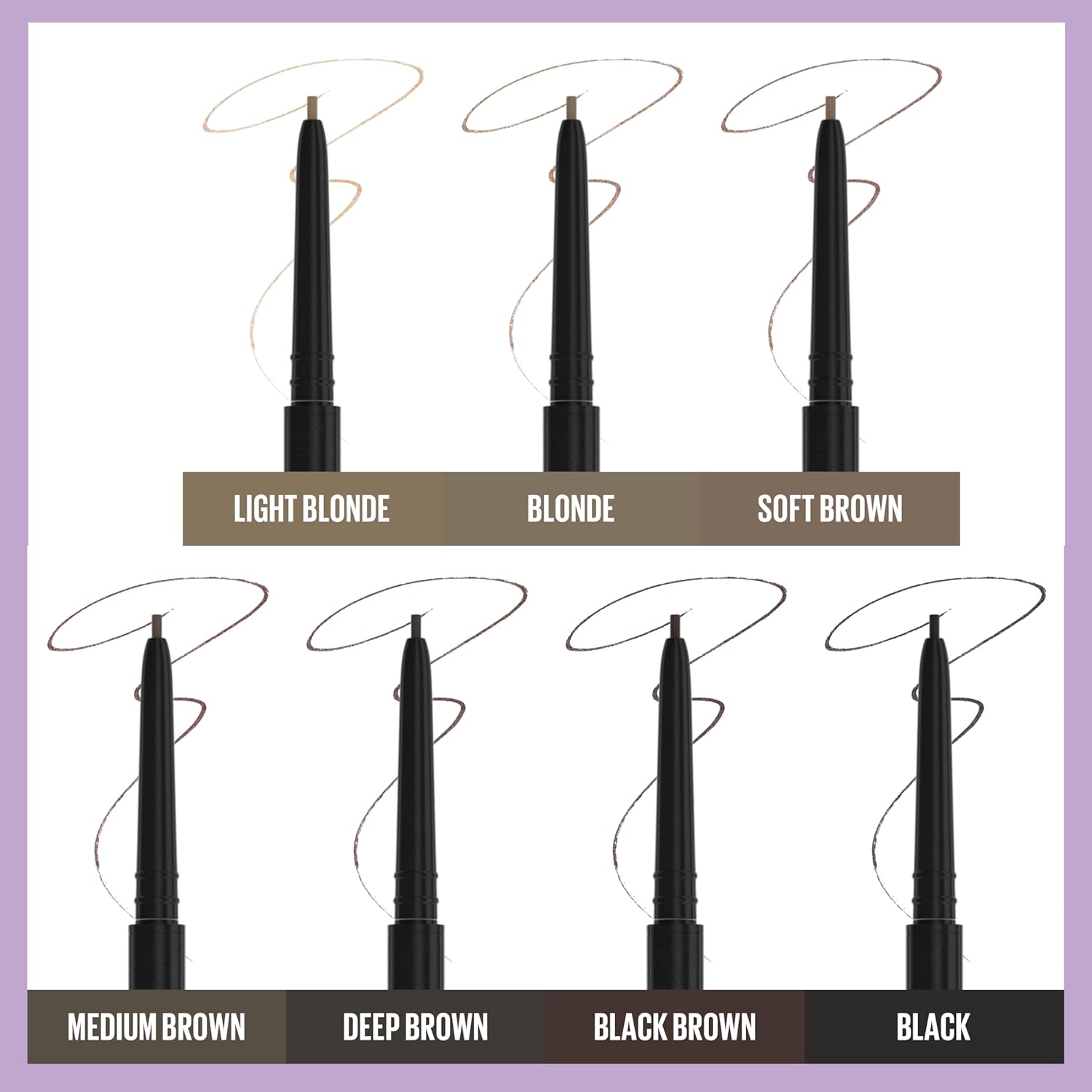 Effortless Application: Draw small, light strokes along the brow contour. Use the brush to groom hairs upward and outward to blend color and set brows. Available in 9 eyebrow makeup shades ranging from light blonde to black brown