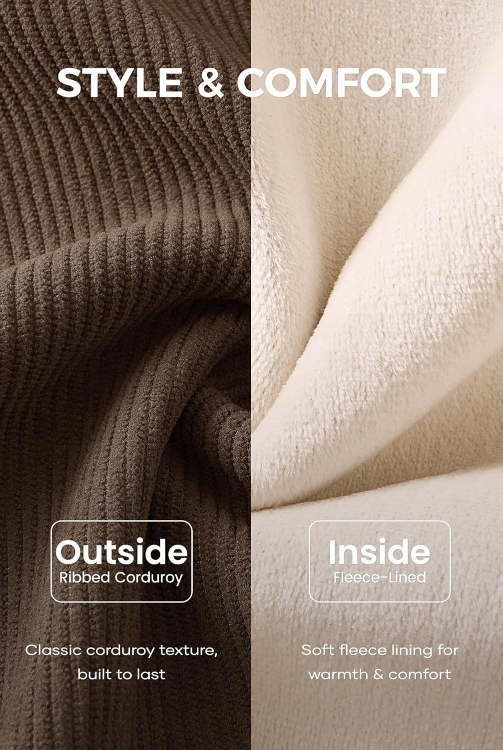Mens Corduroy Fleece-Lined Sweatshirts Winter Heavyweight Casual Fashion Button Pullover (S-3XL)