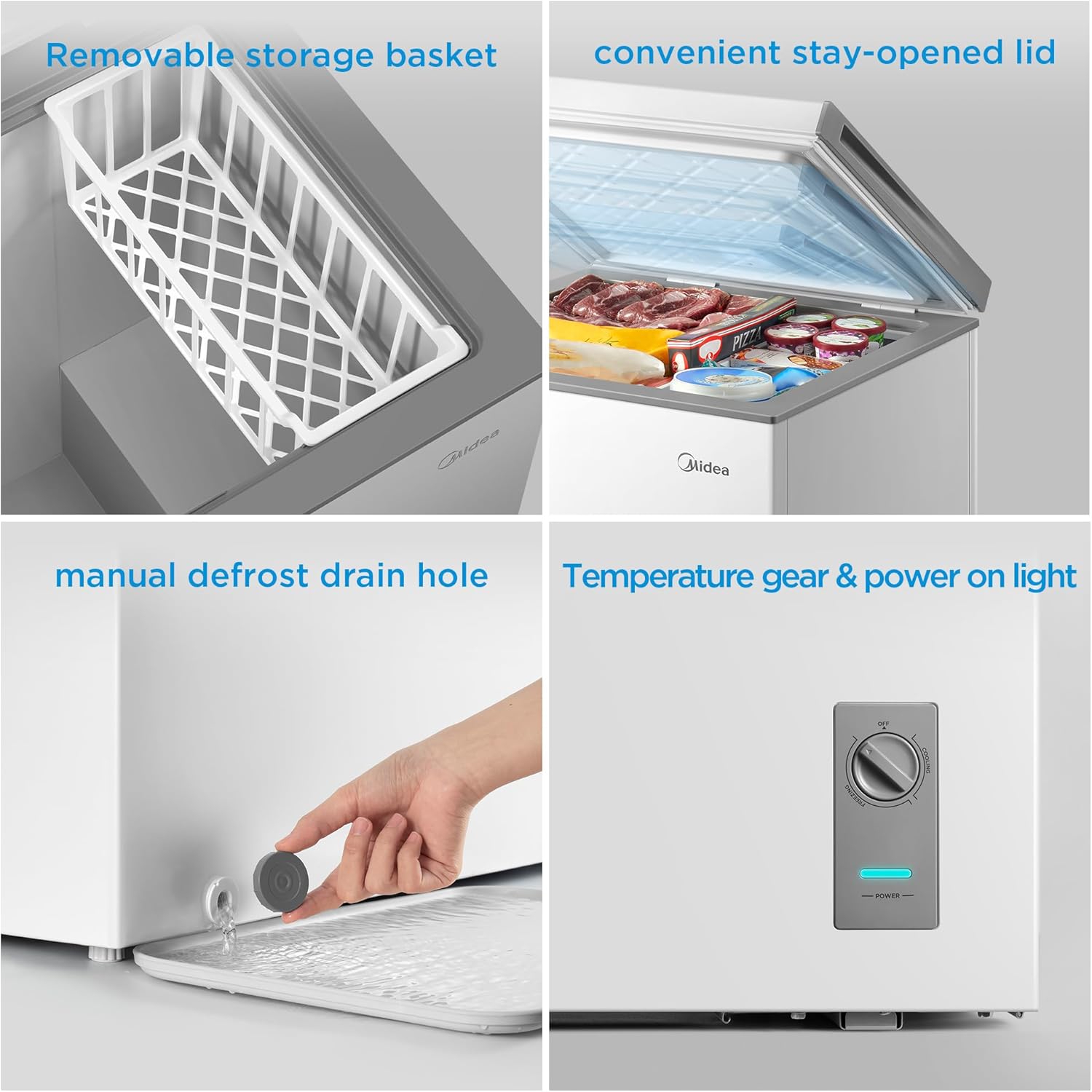Buy Midea MERC05C4BAWW Chest Freezer, 5.1 Cubic Feet Freezer With Removable Basket, Interior LED Light, Adjustable Temperature, For Kitchen Apartment Office, White online from amazon or ebay or walmart Midea MERC05C4BAWW Chest Freezer, 5.1 Cubic Feet Freezer With Removable Basket, Interior LED Light, Adjustable Temperature, For Kitchen Apartment Office, White
