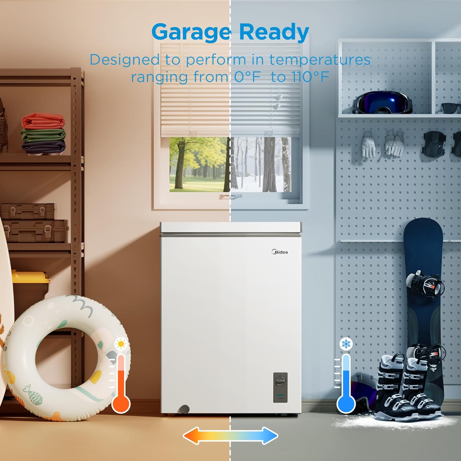 Garage Ready – Designed and tested to operate efficiently in non-climate-controlled environments. (38°F to 110°F in fridge mode, 0°F to 110°F in freezer mode)