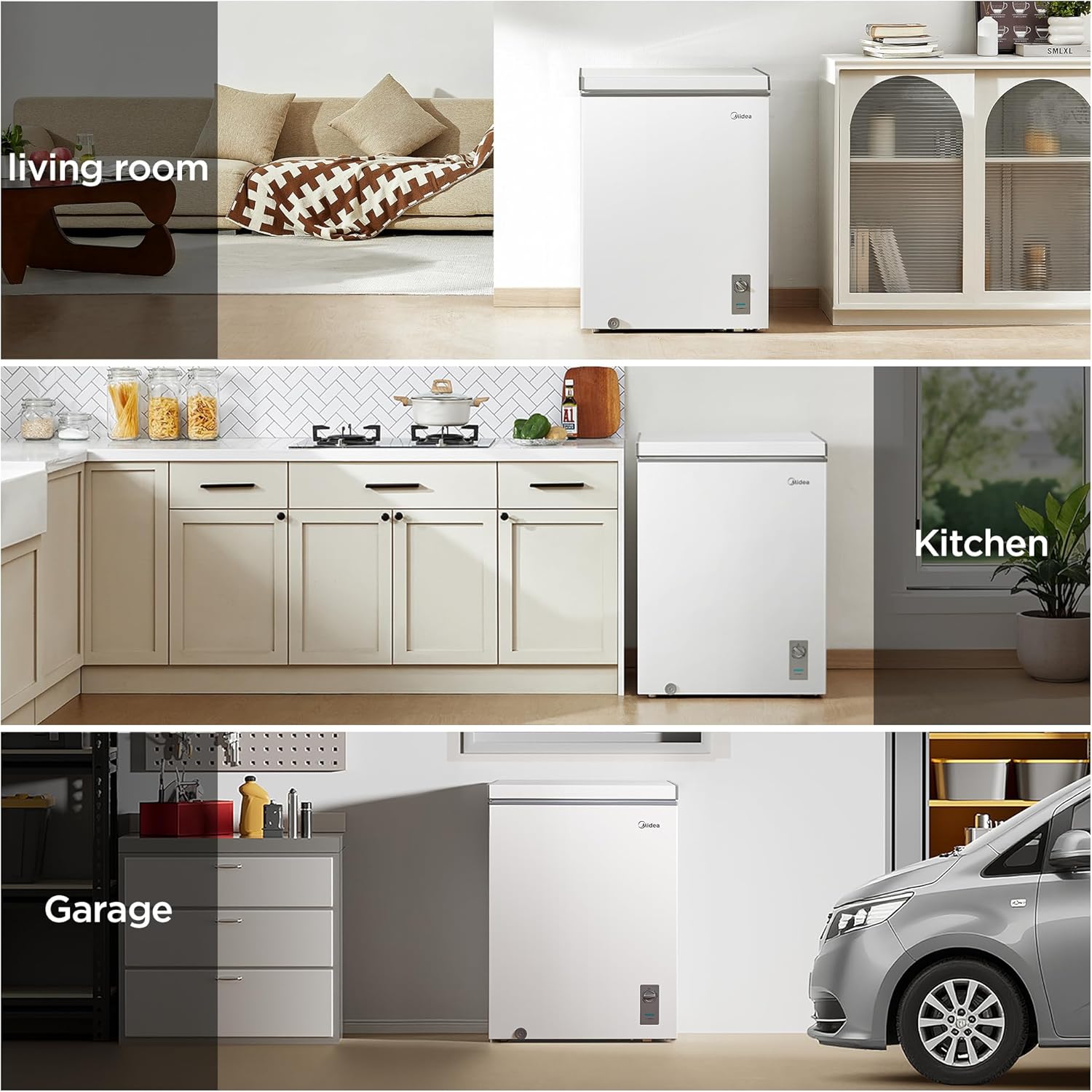 Midea 5.1 cubic feet chest freezer is an excellent choice for holding your favorite food such as meats and ice-cream for long term storage.