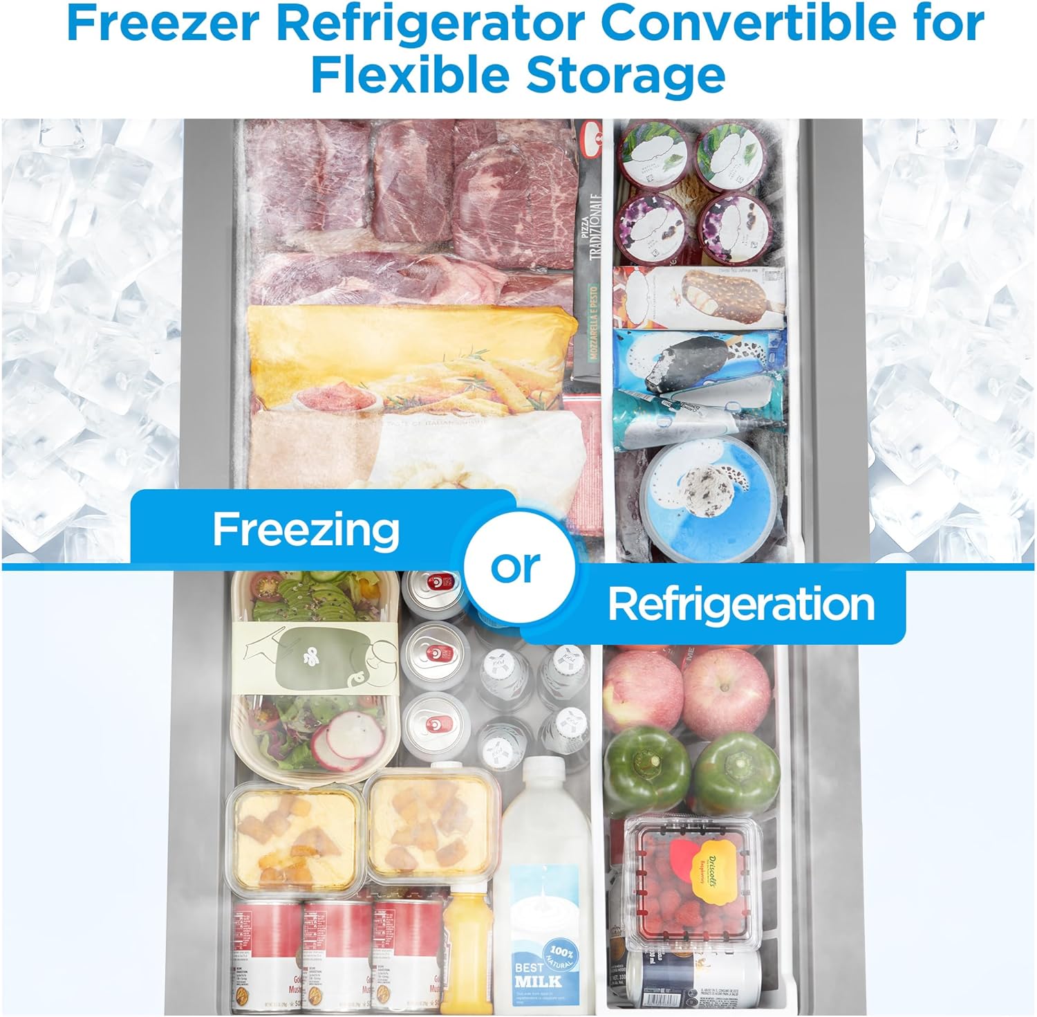 Convertible – Easily converts between freezer and fridge modes to suit your ever-changing food storage needs.