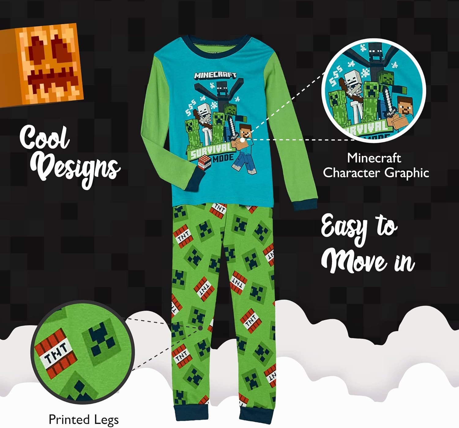 This officially licensed “Minecraft” merchandise is made with high-quality materials with safety and comfort in mind. To ensure maximum comfort and safety, please choose the right size for your child to avoid clothing that is too long or too loose. These pajamas are manufactured in accordance with all clothing safety standards and are not flame-resistant. Let your child put on these fun pajamas and live out their adventures while they sleep or play