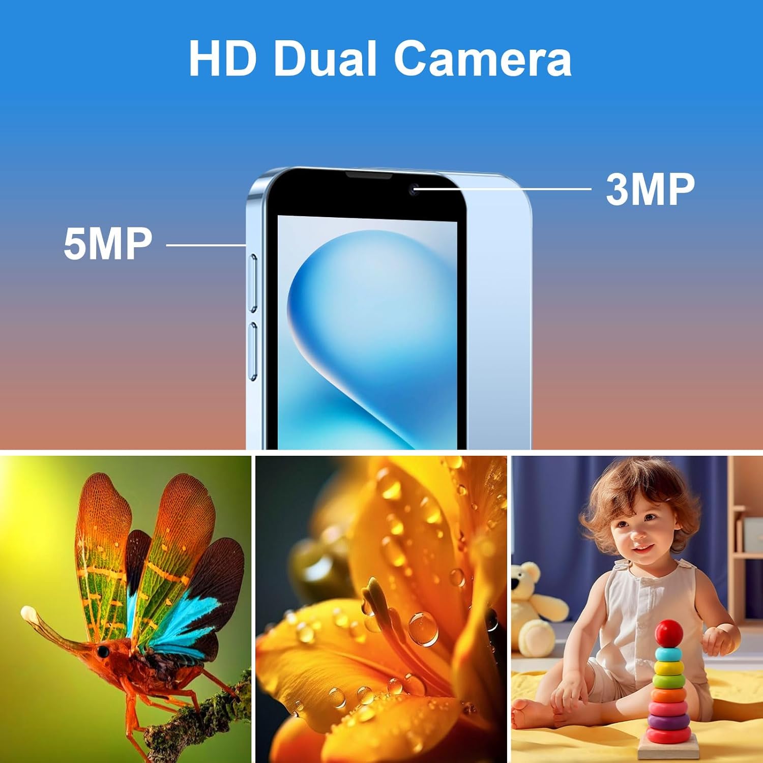 3.Dual Cameras & Smart Security–Capture Memories, Safely: ​ This little phone comes with a 3MP front camera for selfies and 5MP rear lens for adventures, letting them snap life’s moments with clarity. Especially as a mini phone for kids, its facial recognition feature keeps their photos and data secure-perfect for young users. It’s not just a gift; it’s a way to preserve memories safely.