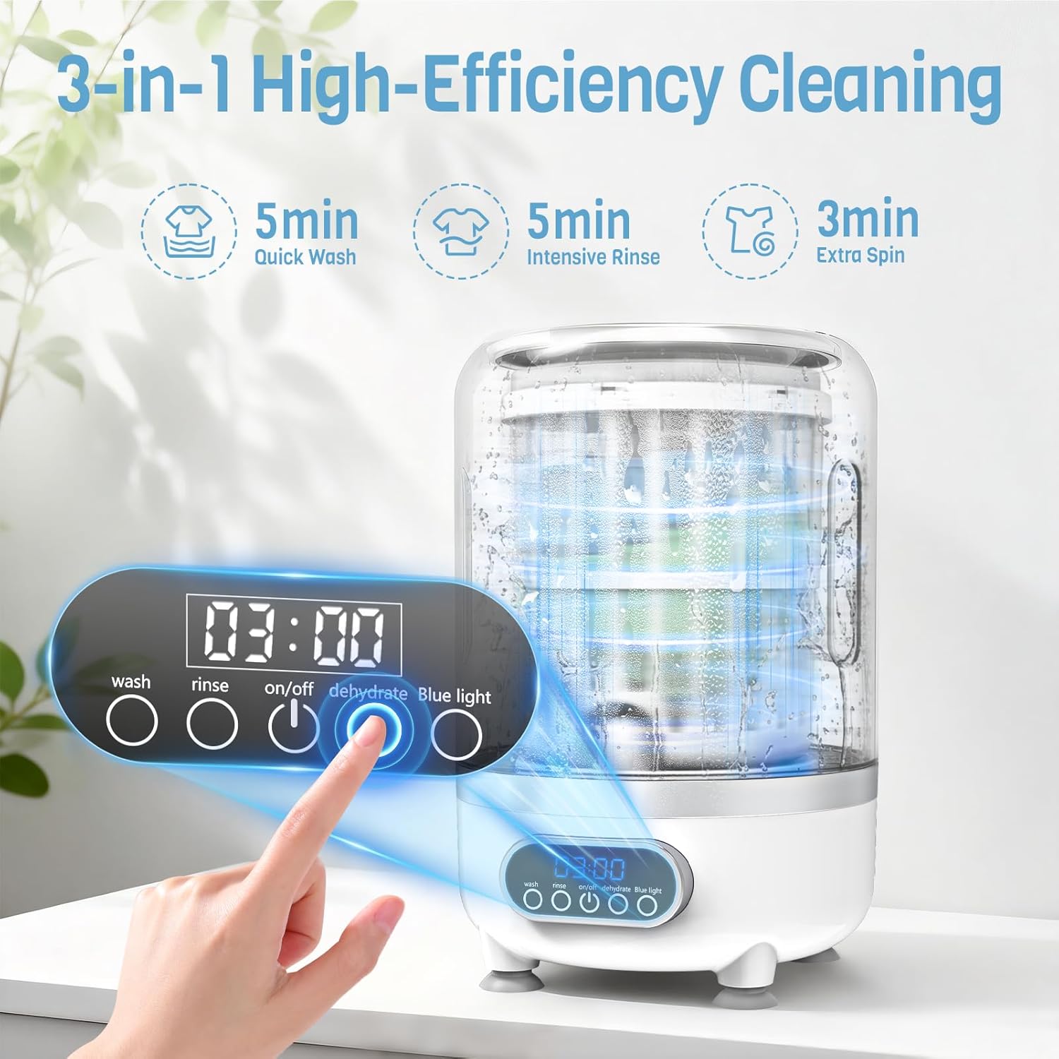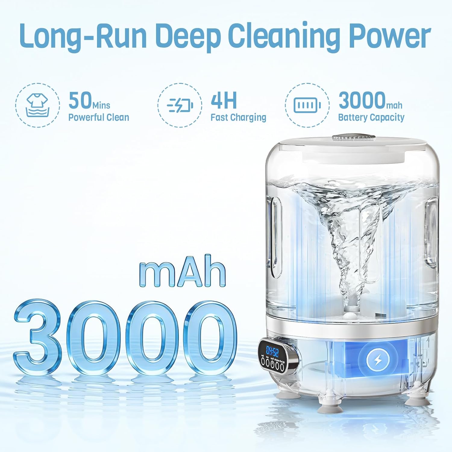 【Long-Lasting Performance】: The mini washer is equipped with a built-in 3000mAh rechargeable battery, delivering up to 50 minutes of operation on a single charge. Its cordless design offers the freedom to wash anytime, anywhere—easily move it between the bathroom, bedroom, or balcony. Wherever you are, our portable laundry device is ready to provide clean, ready-to-wear clothes whenever you need them.