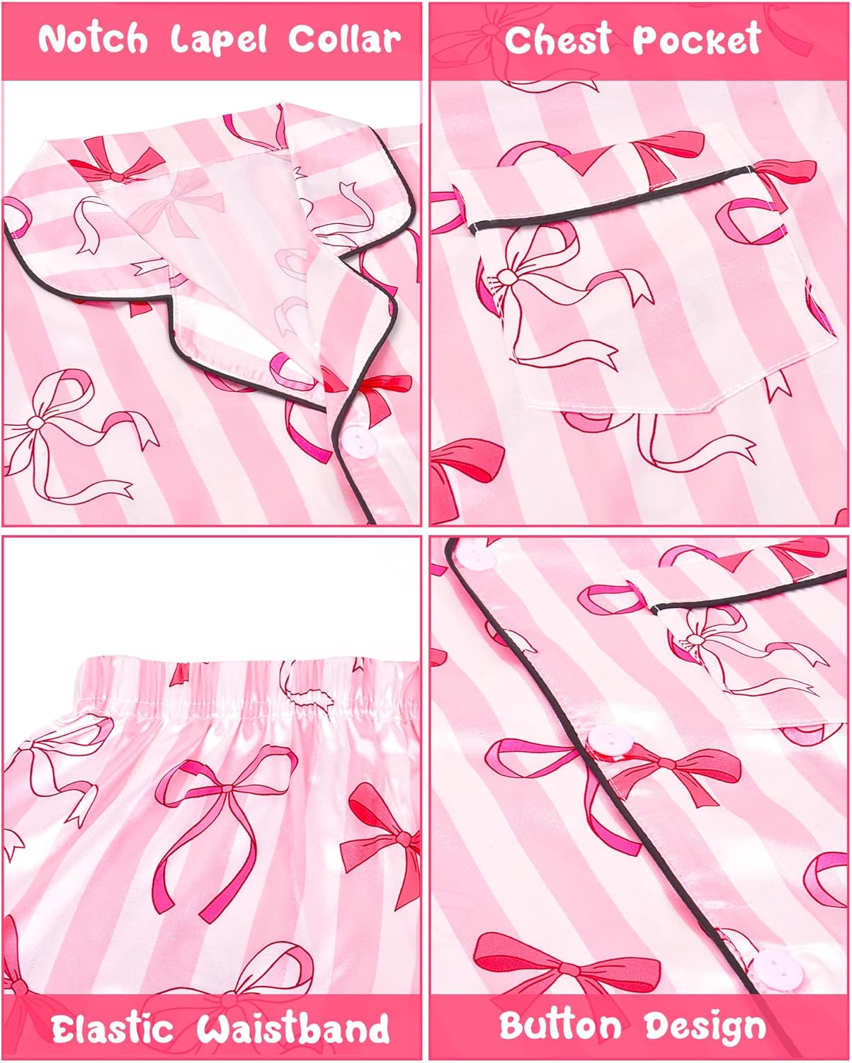 Buy Nidoul Girls Pajamas Satin Pajama Set Silk Pjs Short Sleeve Button Down Summer Bow Sleepwear for Big Kids 7-14Y online from amazon or ebay or walmart Nidoul Girls Pajamas Satin Pajama Set Silk Pjs Short Sleeve Button Down Summer Bow Sleepwear for Big Kids 7-14Y