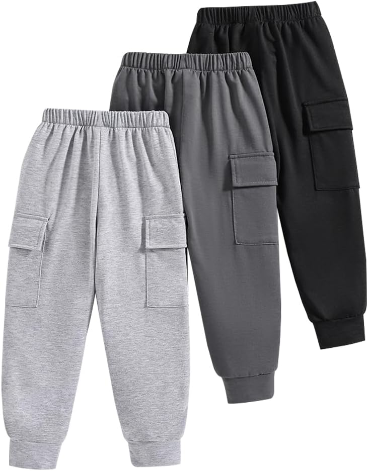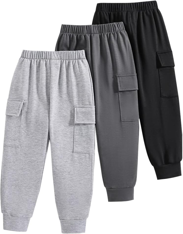 Nivne Tco Boys Casual Pants-Solid Color Soft Trousers-Toddler Boys 3 Pack Sweatpants Set (3-7 Years)