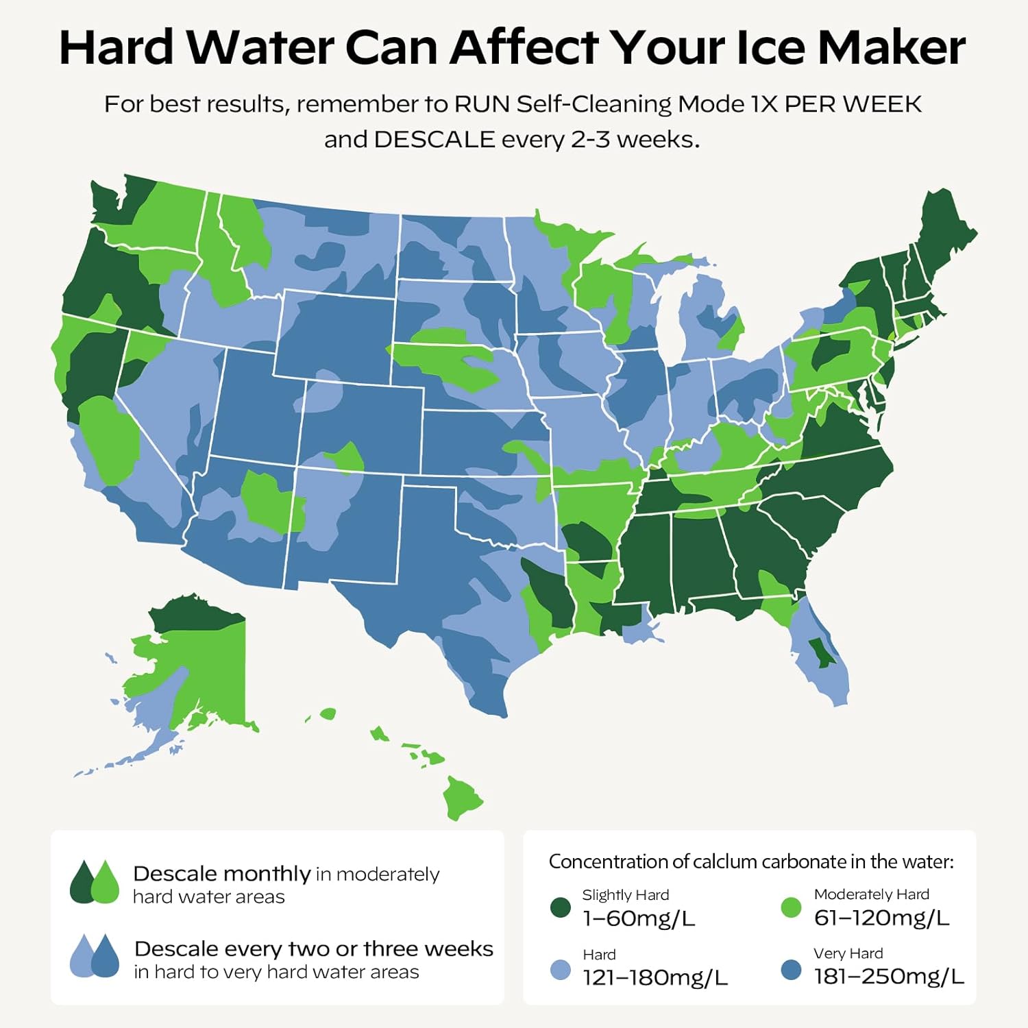 SELF-CLEANING FUNCTION – The countertop ice maker has a removable cover that makes it easy to reach every nook and cranny for deep cleaning. The ice maker also features an automatic self-cleaning cycle that can be activated by pressing and holding the ICE/CLEAN button for 5 seconds.