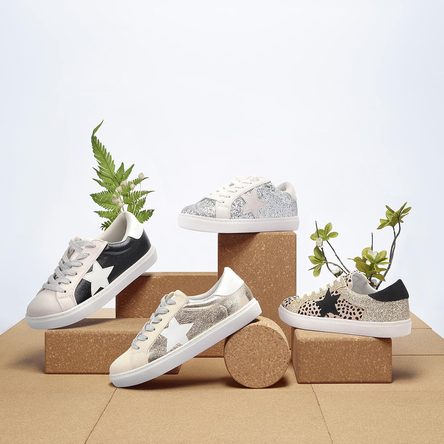 PARTY Women’s Fashion Star Sneaker Lace Up Low Top Comfortable Cushioned Walking Shoes