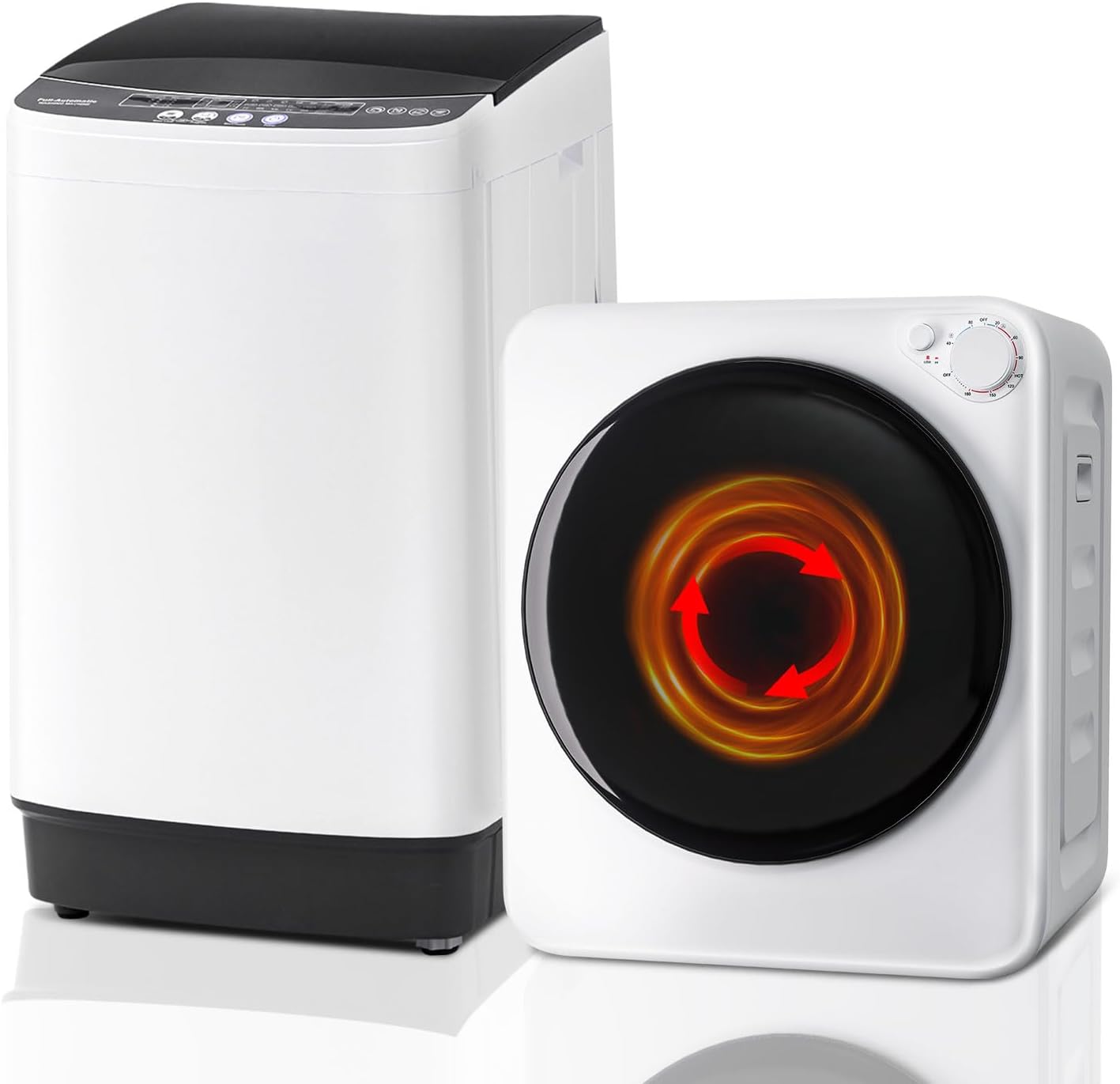 【Wash & Dry Efficiency】This compact laundry duo combines a 17 lbs fully automatic washer and a Max 10 lbs electric dryer for seamless same-day laundry cycles. The washer’s spin-dry function pairs with the dryer’s 800W power and 140°F heat to eliminate damp waits—perfect for rainy days or busy schedules. Wash, dry, and wear your favorite outfits all in one day! (NOTE: for quick drying, no more than 5.5 pounds of clothes at a time)