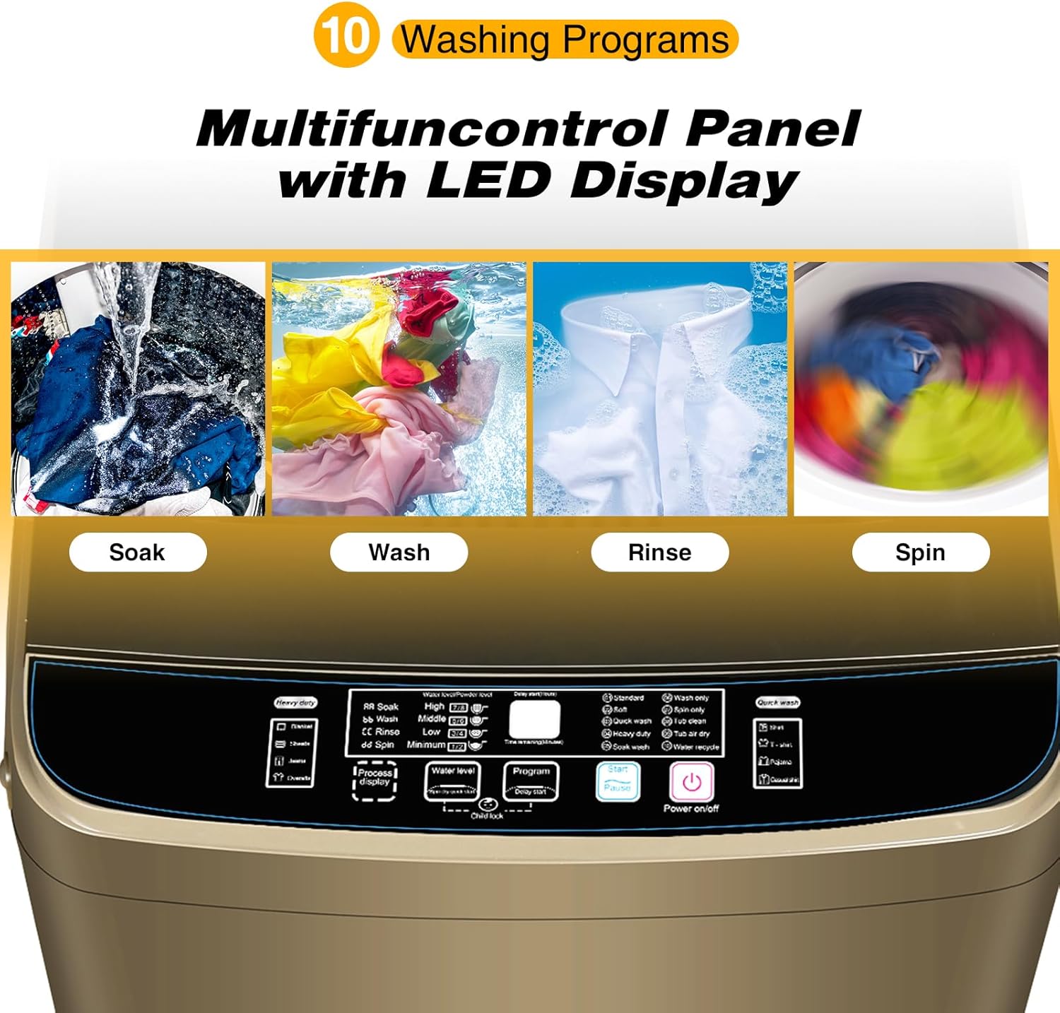 Buy Portable Washing Machine 17.7lbs Full-Automatic Compact Washer Machine for Apartment, 10 Wash Program Small Portable Washer for Dorm, Apartment, RV, Home, Gold online from amazon or ebay or walmart Portable Washing Machine 17.7lbs Full-Automatic Compact Washer Machine for Apartment, 10 Wash Program Small Portable Washer for Dorm, Apartment, RV, Home, Gold