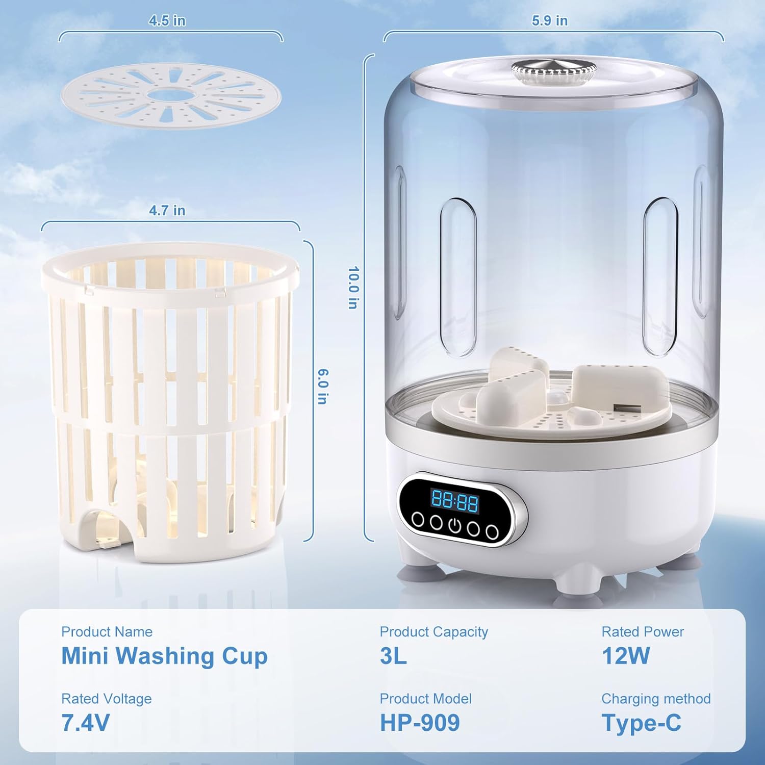 【Compact & Travel-Friendly】 Designed for portability, this compact washing device easily fits into luggage or backpacks, making it ideal for washing underwear, baby clothes, socks, and other small garments during travel, camping, or vacations.