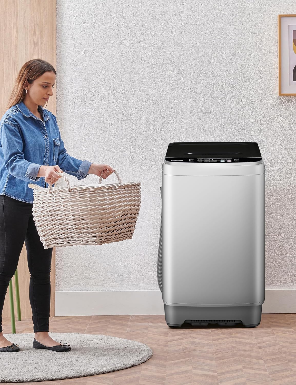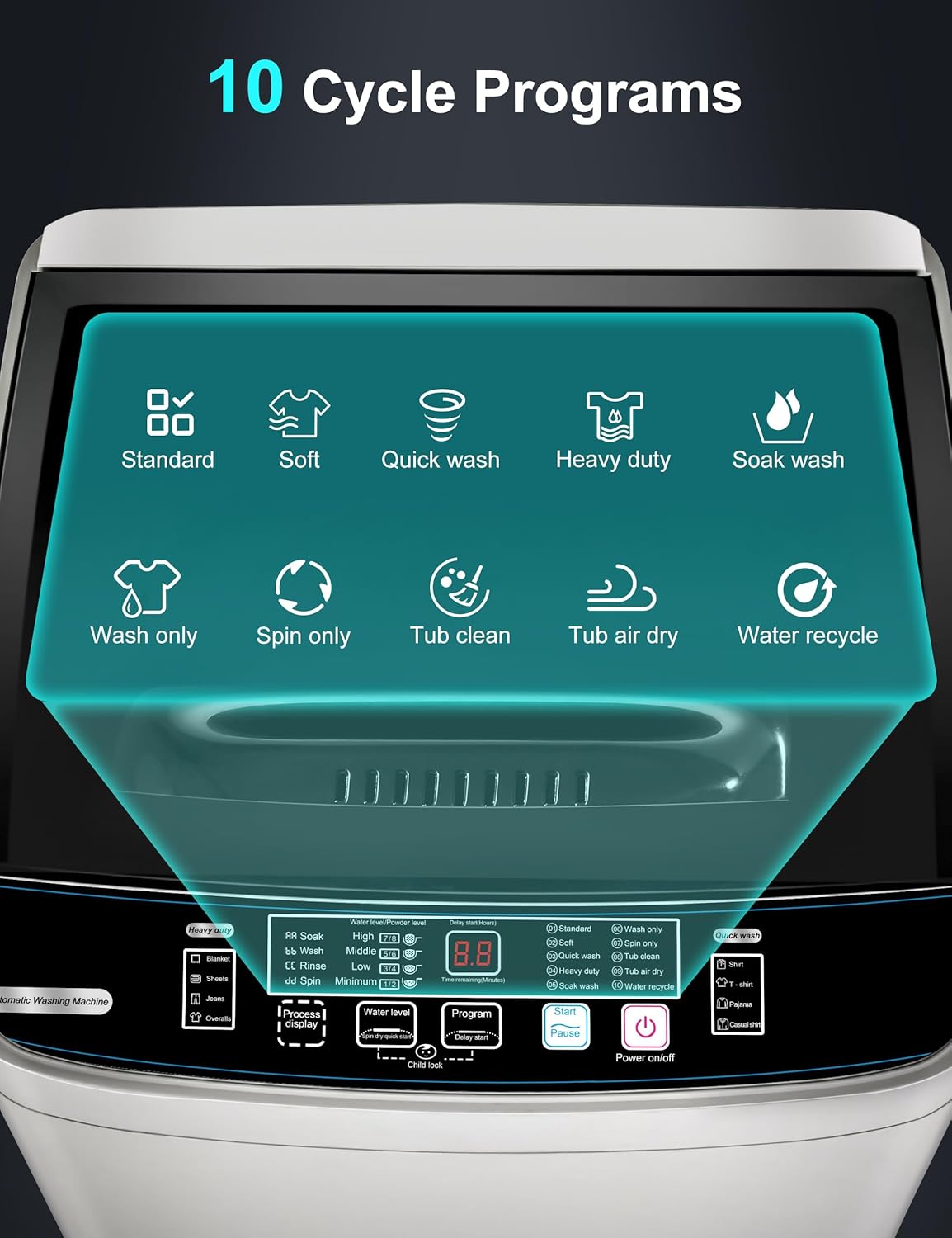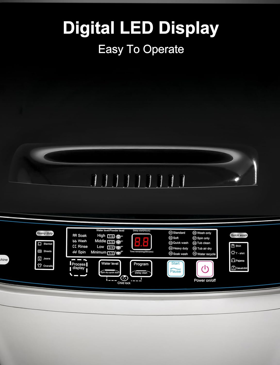 NEW Portable Washing Machine – 2.0 Cu.ft(17.7lbs) Full-Automatic Compact Top Load Washer for Apartments, Homes & Dorms, 10 Wash Cycles, Low Noise, IPX4 , Energy Efficient with LED Display & Dynamic Unbalance Detection