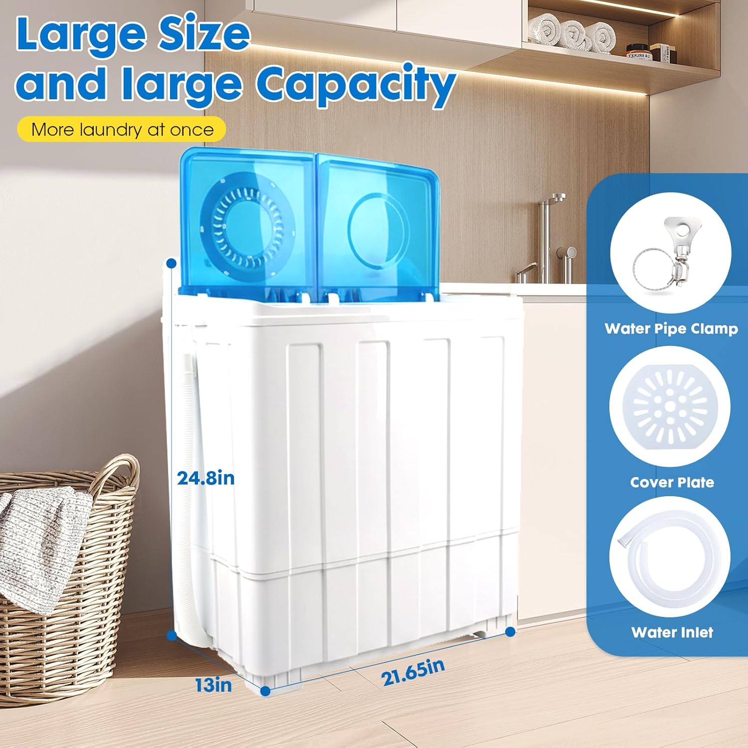 【Compact and Space-Saving Design】Perfect for apartments, dormitories, camping trips, and small spaces, this washer is lightweight and easy to move. No installation is required, and it fits easily in your bathroom, closet, or any tight space. Enjoy the convenience of a portable washer without compromising on performance or efficiency.