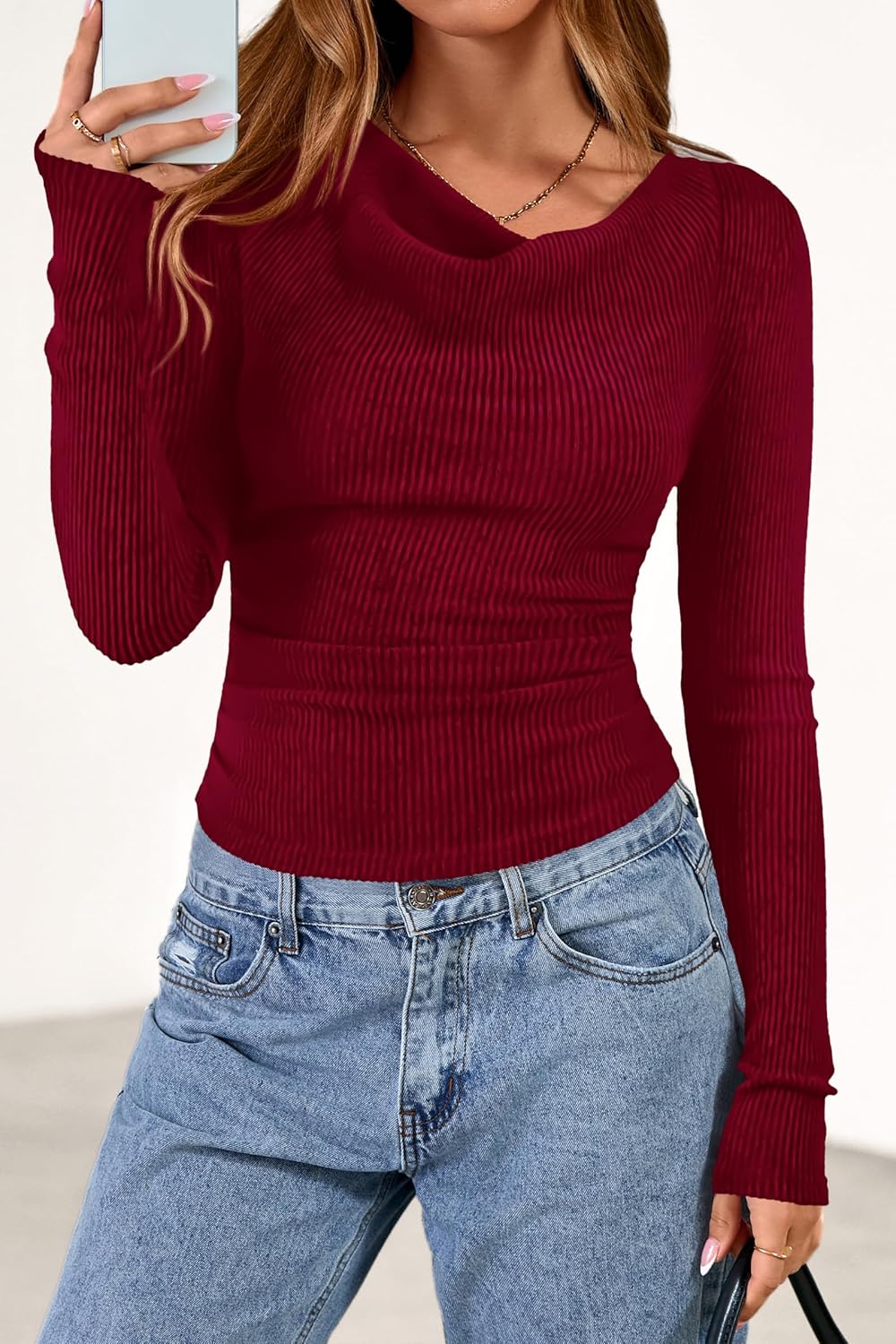 Feature—Cowl Neck Tops / Long Sleeve Shirts For Women / Crop Tops For Women / Slim Fit Blouses / Ruched Tshirts For Women / Winter Clothes / Fall Tops For Women 2026