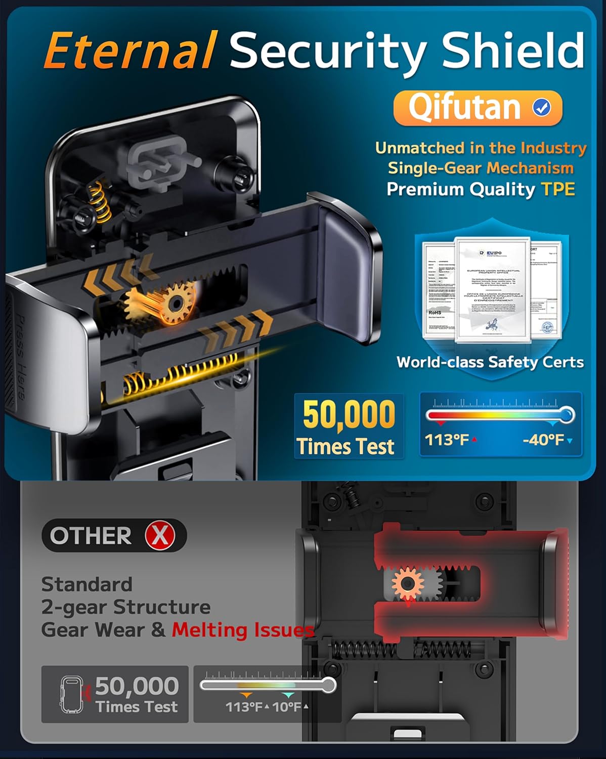 Strong Suction Performance: Car phone holder comes with a double-locked suction cup made of heat-resistant TPU material, guaranteeing it stays firmly attached to your dashboard even in extreme heat. Reactivate its sticky power by washing with water and air-drying.