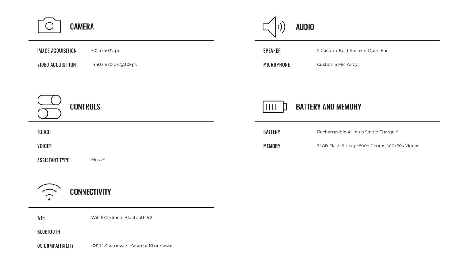 CAPTURE WHAT YOU SEE AND HEAR HANDS-FREE – Capture exactly what you see and hear with an ultra-wide 12 MP camera and a five-mic system. Livestream it on Facebook and Instagram.