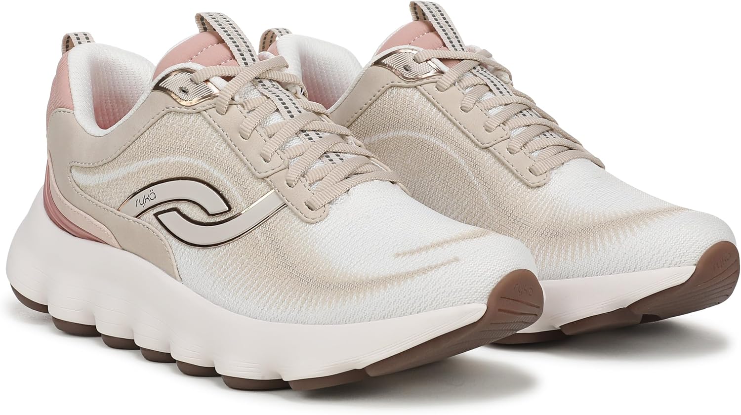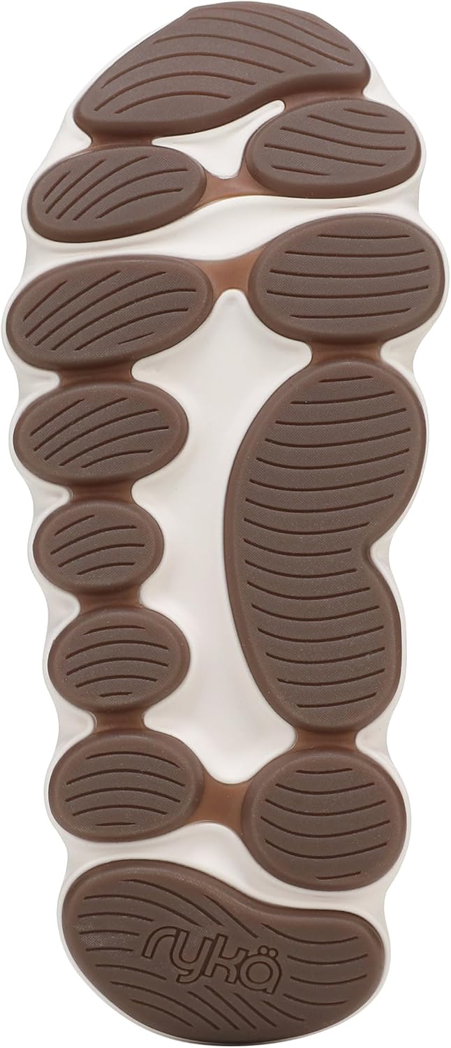 Reach for more in these innovative walking shoes with a unique cushioning experience and smooth ride. BEST FOR: Fitness walking. PERFORMANCE TESTED: Proven in lab testing for a midsole design that provides a smooth heel to toe transition, 25 degrees of forefoot flexibility for the ideal amount, high energy return for more spring in your step, and better than average pronation prevention. RYKÄ Q TECH: Built for a woman’s quadricep muscle Q ANGLE with a narrower heel, roomier toe + contoured cushioning for stability. MATERIALS: Breathable printed mesh upper and hung lining + Padded tongue and heel for extra cushioning. CLOSURE: Secure lace-up front with tongue and heel pull tabs for easy on/off. INSOLE: Anatomical insole with extra arch support + heel support and partially recycled EVA. MIDSOLE: ACTIVenergy™ EVA foam for soft and responsive midsole cushioning + Pods that provide targeted support for each part of the foot while promoting natural motion. OUTSOLE: Compression-molded rubber with decoupled heel rocker and arch support pod. WEIGHT: 231 g/8.1 oz per shoe. HEEL-TO-TOE DROP: 10 mm.