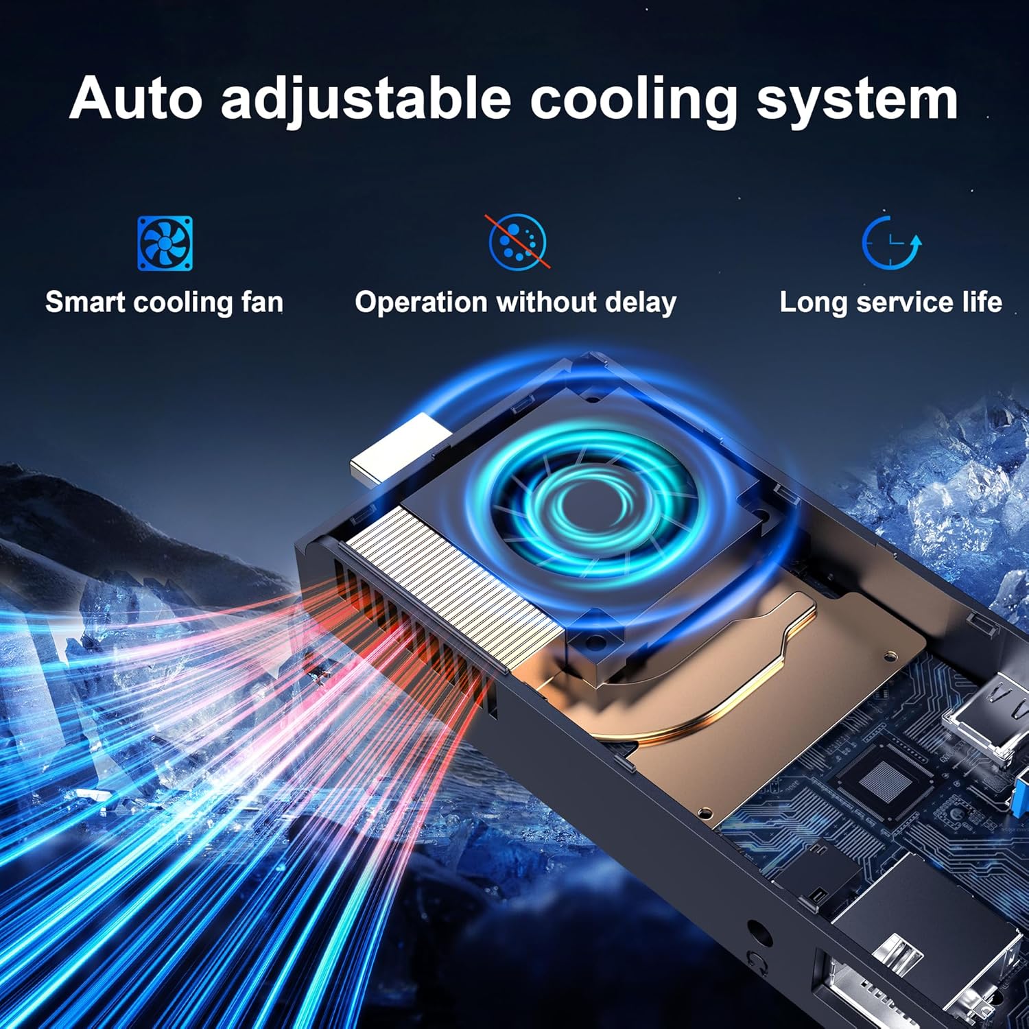 【AUTO-ADJUSTABLE COOLING SYSTEM】This Intel stick PC is designed with a unique cooling system, The intelligent variable speed silent fan will blow the heat of the fins out of the machine in time. According to different CPU usage rates, the fan will automatically adjust the air volume to release higher performance. And it fundamentally solves the lagging phenomenon caused by high CPU temperature.
