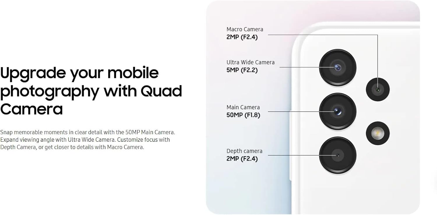 32GB ROM, 3GB RAM, Exynos 850 (8nm), Octa-core, Mali-G52 GPU, Android 12, One UI 4.1