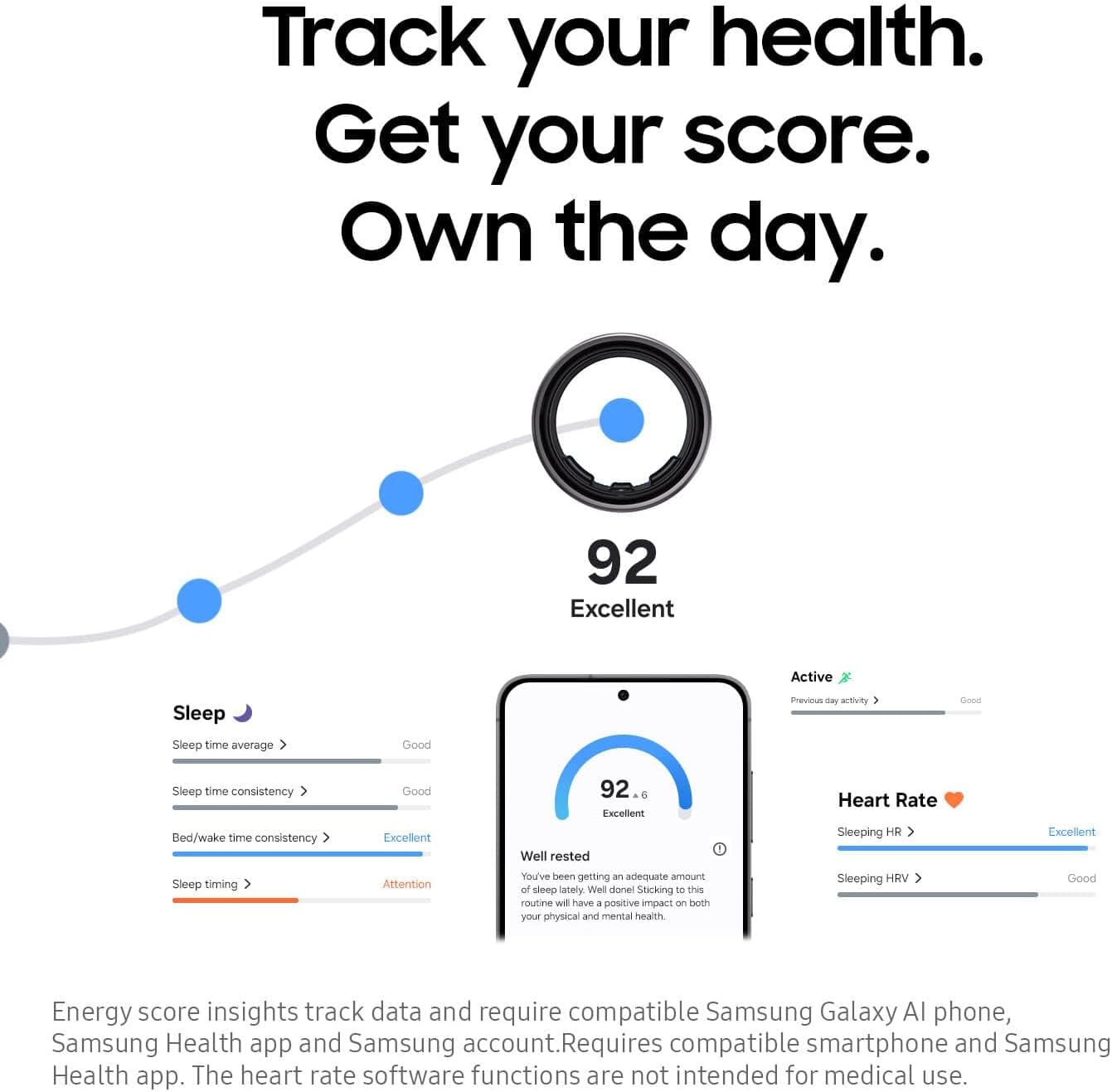 READY, SET, TRACK: Let Galaxy Ring simplify your workouts; Just hop on the treadmill and start exercising — your Galaxy Ring intuitively starts tracking without you having to lift a finger⁶; It’s never been easier to collect the insights you need