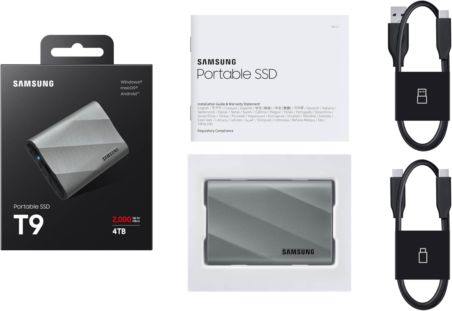 Buy Samsung T9 2TB, Portable SSD, up to 2000MB/s, USB 3.2 Gen 2×2 (20Gbps) NVMe, Rugged, for Photographers, Content Creators and Gaming, External Solid State Drive (MU-PK2T0G/WW) Gray online from amazon or ebay or walmart Samsung T9 2TB, Portable SSD, up to 2000MB/s, USB 3.2 Gen 2×2 (20Gbps) NVMe, Rugged, for Photographers, Content Creators and Gaming, External Solid State Drive (MU-PK2T0G/WW) Gray