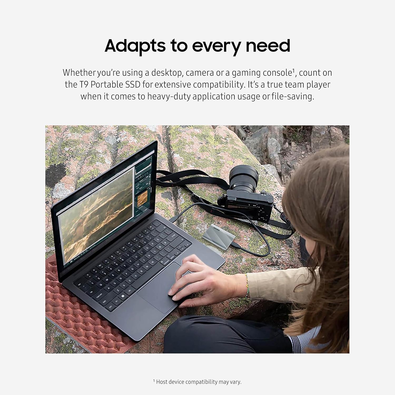 EXTENSIVE COMPATIBILITY: Whether you’re using a desktop, camera or a gaming console***, count on the T9 Portable SSD for extensive compatibility; It’s a true team player when it comes to heavy-duty application usage or file-saving