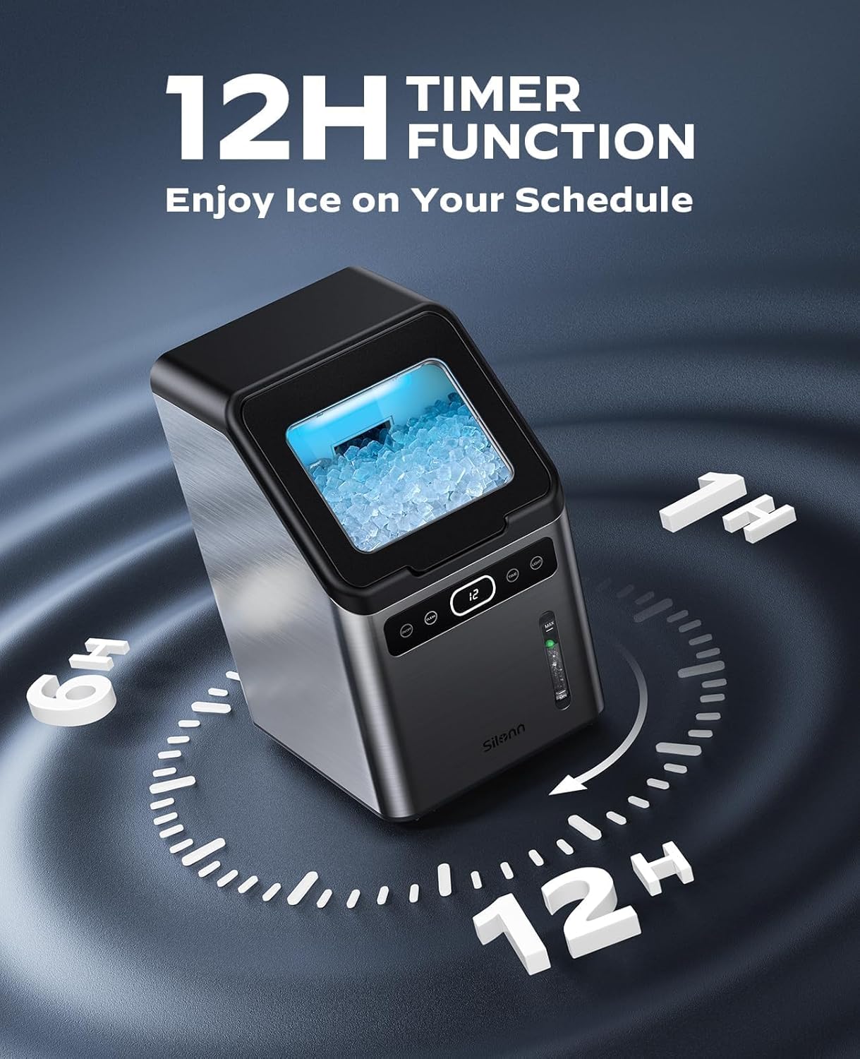 Silonn Nugget Ice Makers Countertop,Timer Pebble Ice Maker with Soft Chewable Ice, 44lbs per Day Ice Machine with Self-Cleaning,One-Click Operation, Stainless Steel