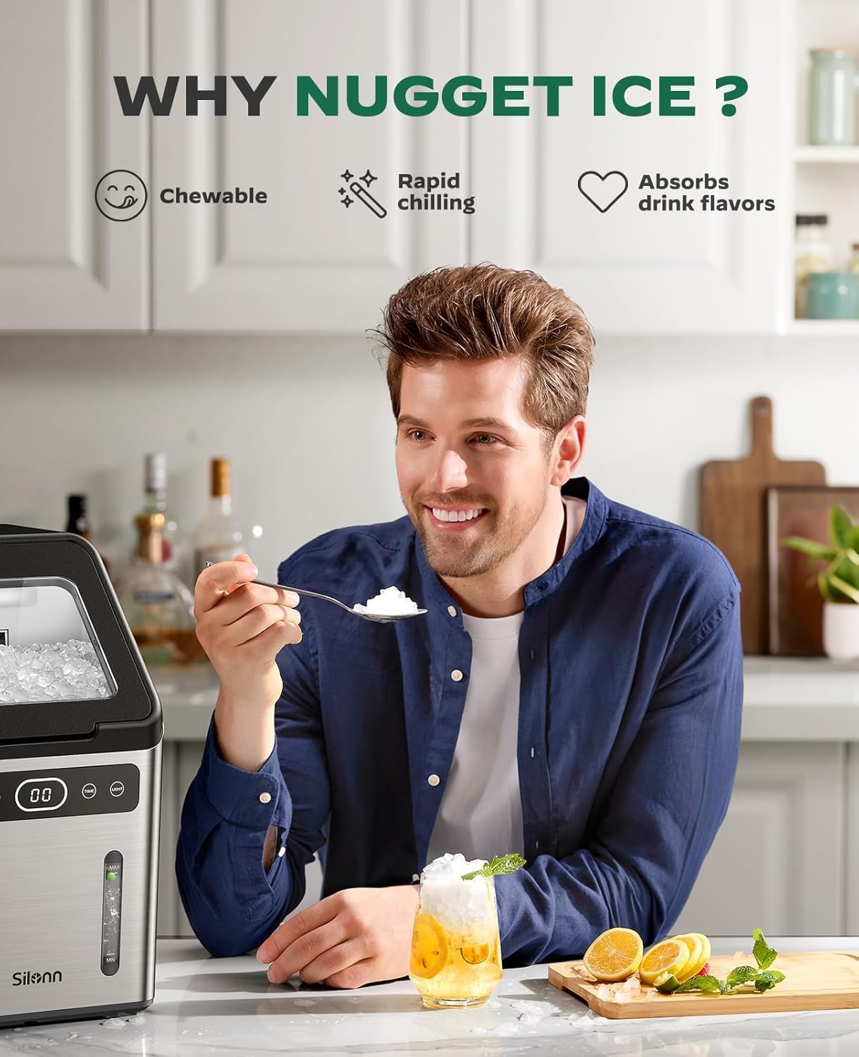 Buy Silonn Nugget Ice Makers Countertop,Timer Pebble Ice Maker with Soft Chewable Ice, 44lbs per Day Ice Machine with Self-Cleaning,One-Click Operation, Stainless Steel online from amazon or ebay or walmart Silonn Nugget Ice Makers Countertop,Timer Pebble Ice Maker with Soft Chewable Ice, 44lbs per Day Ice Machine with Self-Cleaning,One-Click Operation, Stainless Steel