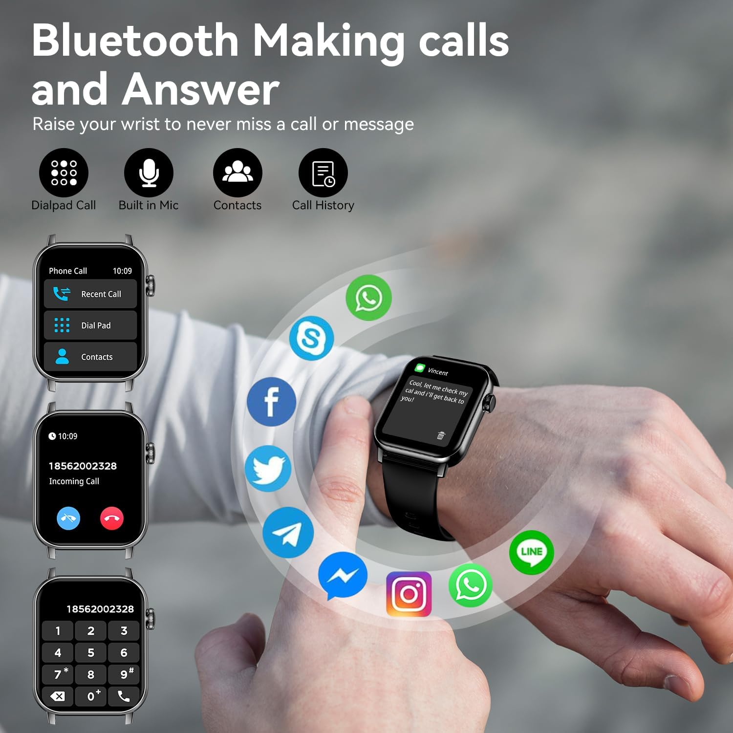 Take Calls & Get Alerts on Your Wrist: Make and answer phone calls directly from your watch via Bluetooth connection. Stay updated with notifications for calls, texts, emails, and social media apps for true hands-free convenience