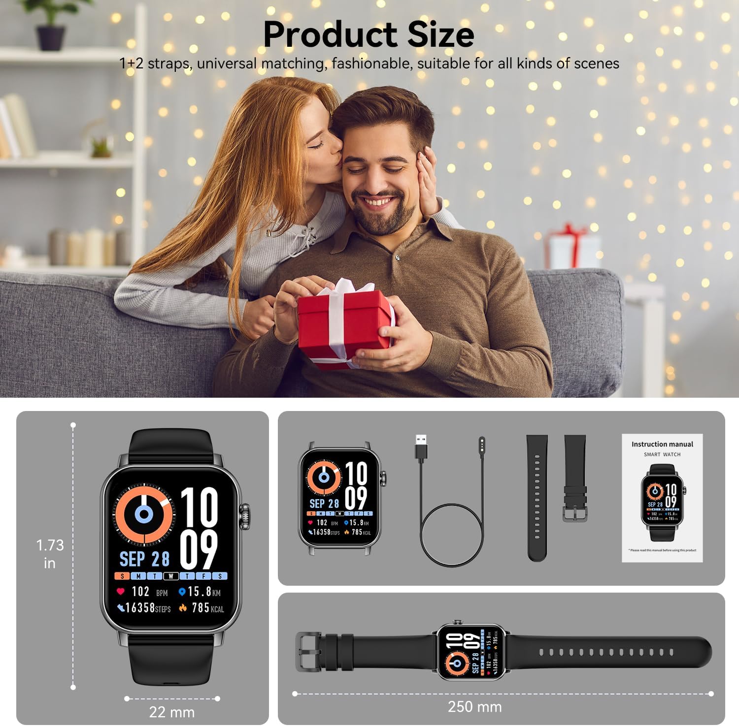 Wide Compatibility & Easy Setup: Seamlessly pairs with most smartphones (iOS 10.0+ & Android 7.0+). Download the free app to sync data, analyze trends, control your phone’s camera, and access more smart features