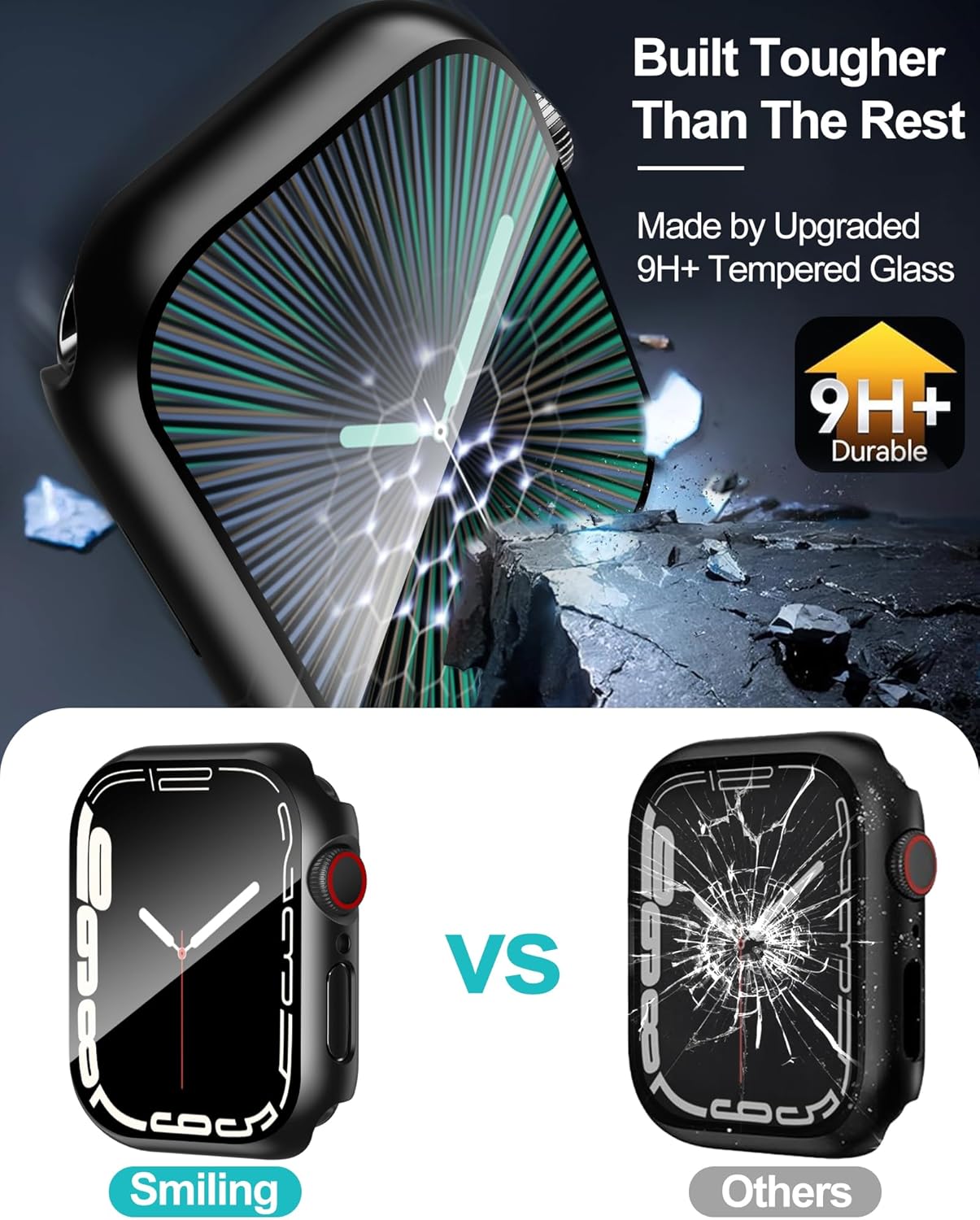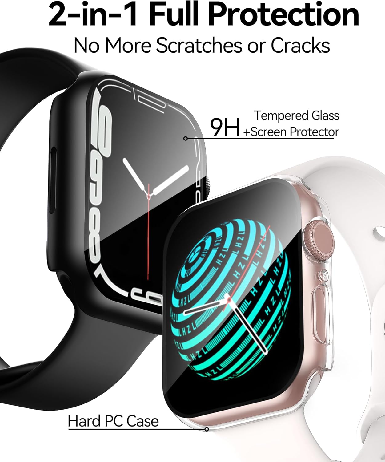 [2-in-1 Full Protection]: Durable Hard PC case with built-in 9H+ HD clear tempered glass screen protector, all around protects your Apple Watch 40mm Smartwatch from scratch, bumps, and accidental drops.