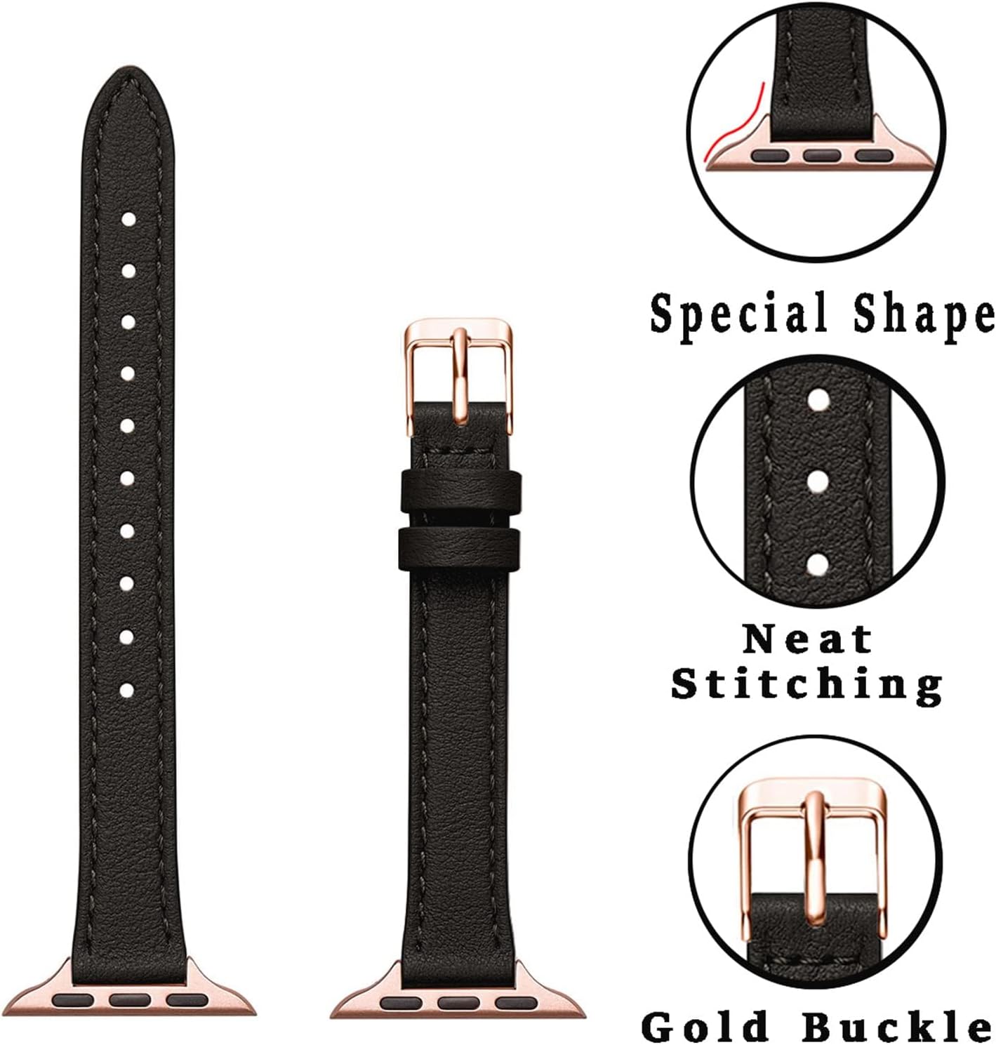 Buy STIROLL Slim Leather Bands Compatible with Apple Watch Band 38mm 40mm 41mm 42mm(Series 11 10), Top Grain Leather Watch Thin Wristband for iWatch SE 9 8 7 6 5 4 3 2 1 (Black Rose Gold) online from amazon or ebay or walmart STIROLL Slim Leather Bands Compatible with Apple Watch Band 38mm 40mm 41mm 42mm(Series 11 10), Top Grain Leather Watch Thin Wristband for iWatch SE 9 8 7 6 5 4 3 2 1 (Black Rose Gold)