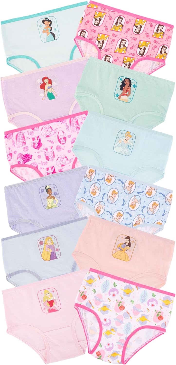 Suggest a better title and return a single title only without any other comments: Disney Girls Princess Exclusive 12 Days of Surprise Unboxing Panties Perfect for Gifting or Potty Training in 2/3T, 4T, 6, 8