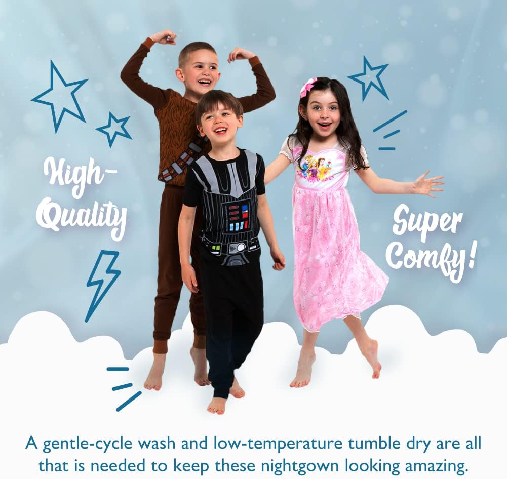 This officially licensed Disney product is made with high-quality materials and safety and comfort in mind. To ensure maximum comfort and safety, please choose the right size for your child to avoid clothing that is too long or too loose. These pajamas are manufactured in accordance with all clothing safety standards and are flame-resistant. Let your child put on these fun pajamas and live out their adventures while they sleep or play.