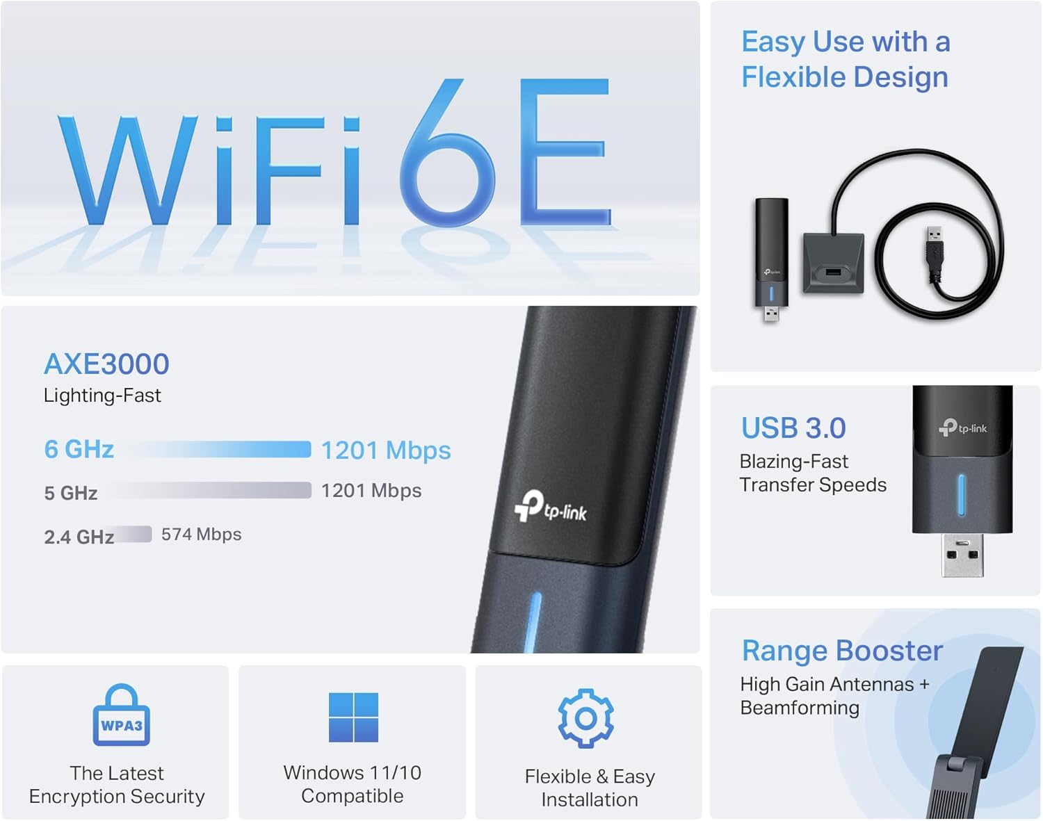Buy TP-Link WiFi 6E USB Adapter for Desktop PC – (Archer TXE50UH) AXE3000 Tri-Band Wireless Network Adapter, Ultra-Low Latency, MU-MIMO, OFDMA, Refined Security, WPA3, Supports Windows 11/10 online from amazon or ebay or walmart TP-Link WiFi 6E USB Adapter for Desktop PC – (Archer TXE50UH) AXE3000 Tri-Band Wireless Network Adapter, Ultra-Low Latency, MU-MIMO, OFDMA, Refined Security, WPA3, Supports Windows 11/10