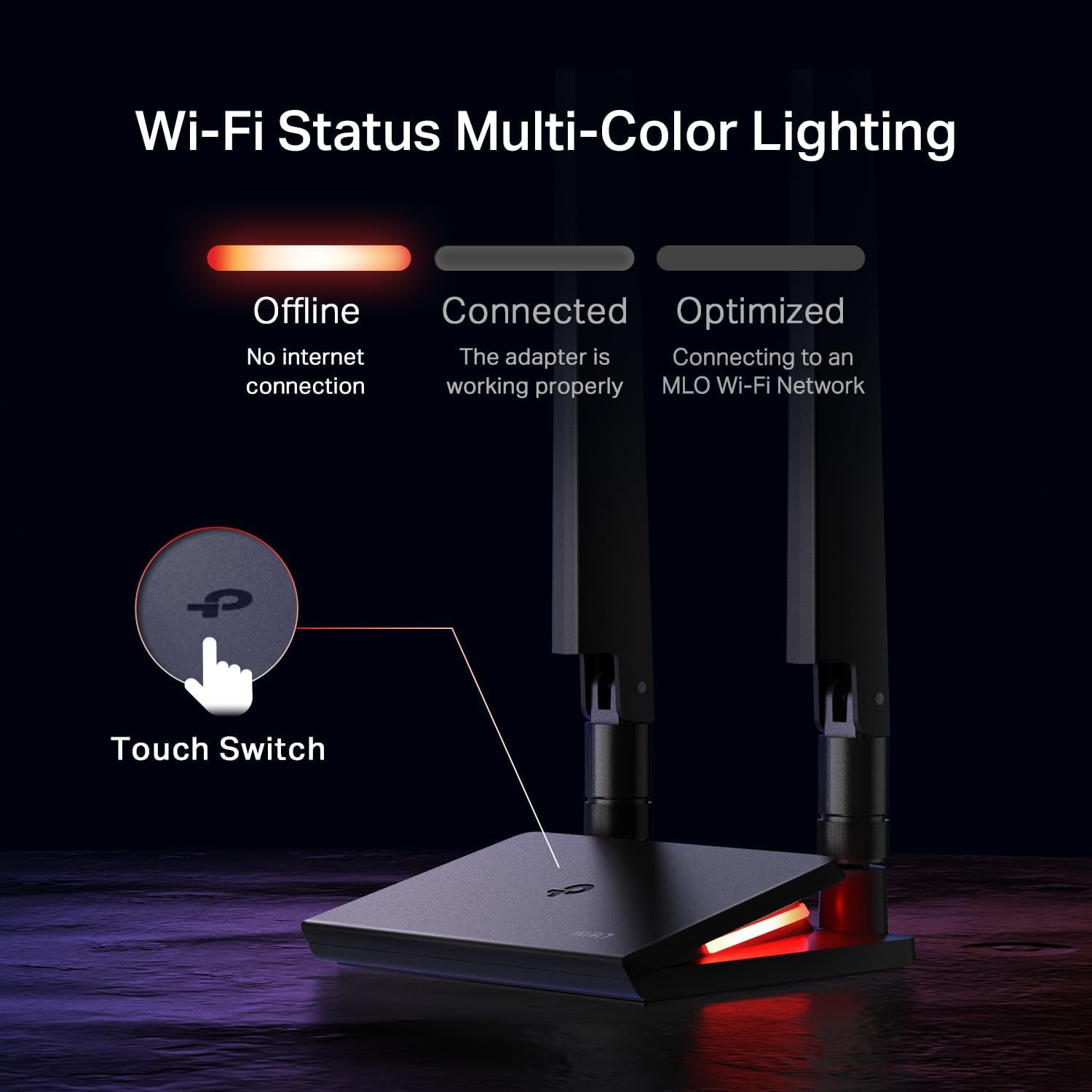 𝐌𝐮𝐥𝐭𝐢𝐜𝐨𝐥𝐨𝐫 𝐖𝐢-𝐅𝐢 𝐒𝐭𝐚𝐭𝐮𝐬 𝐋𝐄𝐃 𝐋𝐢𝐠𝐡𝐭𝐢𝐧𝐠: Equipped with captivating LED lighting effects, the magnetic base not only offers an intuitive display of network status but also allows for effortless customization through its responsive touch switch. enhancing both functionality and aesthetics.