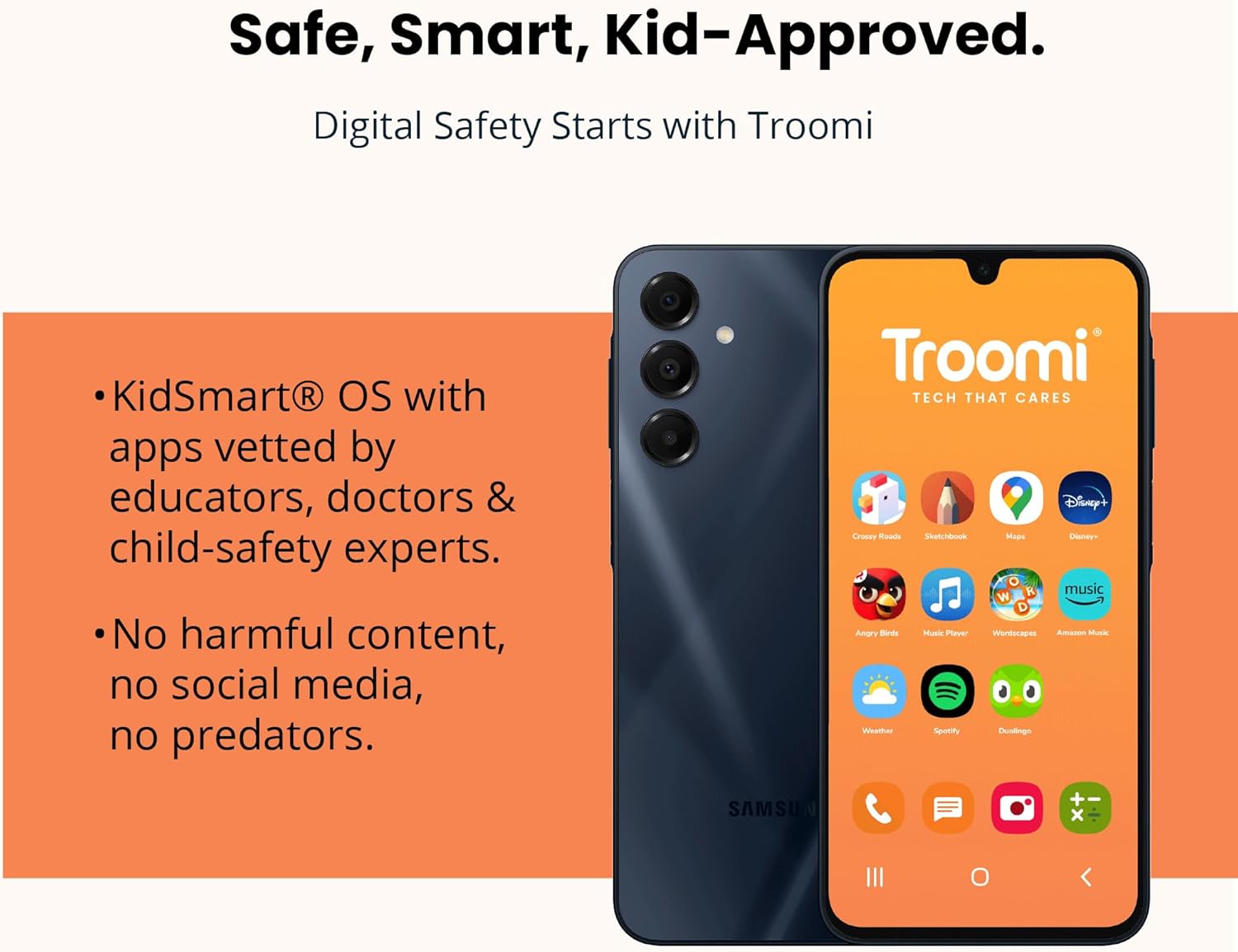 Troomi Phone for Kids and Teens – Galaxy A16 – Parental Controls, GPS Tracking, Text Monitoring & Content Filtering, 10,000+ Apps – Monthly Service and Activation Required