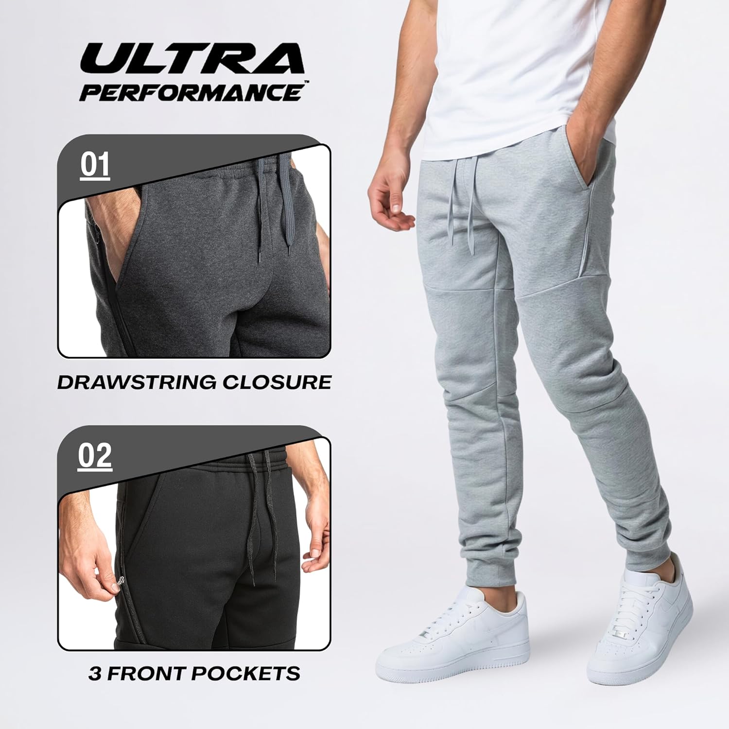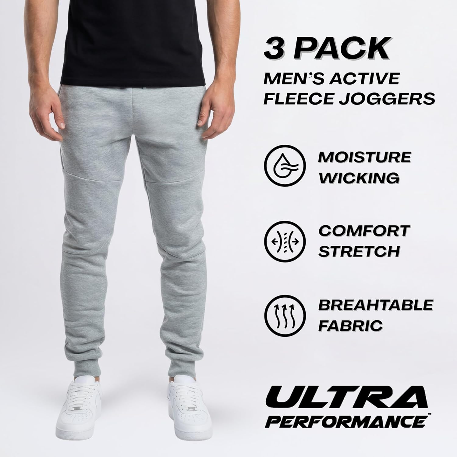 Ultra Performance 3 Pack Fleece Active Tech Joggers for Men, Mens Sweatpants with Zipper Pockets