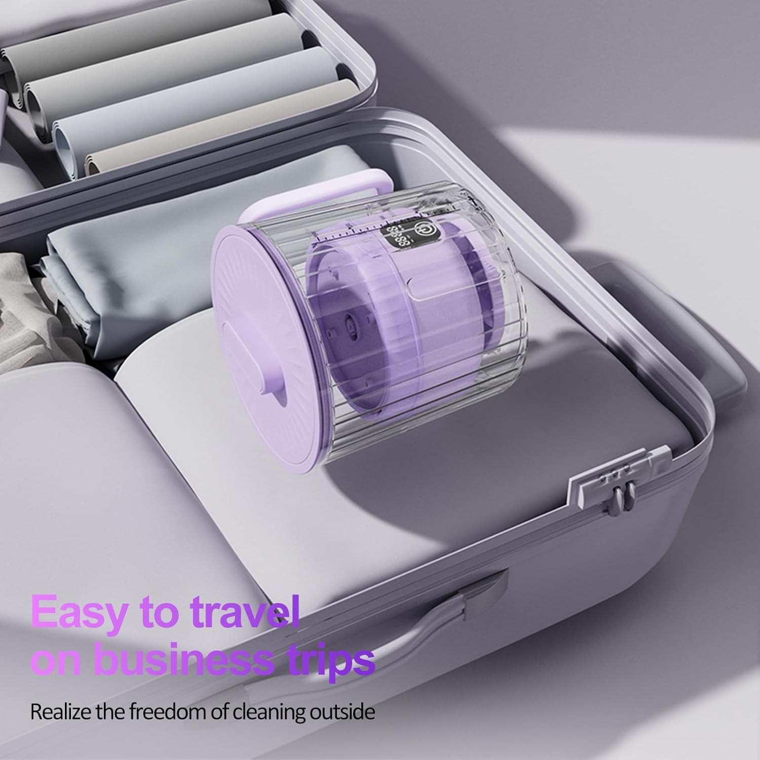【2.5L Mini washer】 Boasts an upgraded with handle 2.5L capacity, plus a built-in 4000mah rechargeable battery. its led touch display lets you check remaining power easily, making it ideal for washing underwear, socks, baby items, and other delicate pieces.