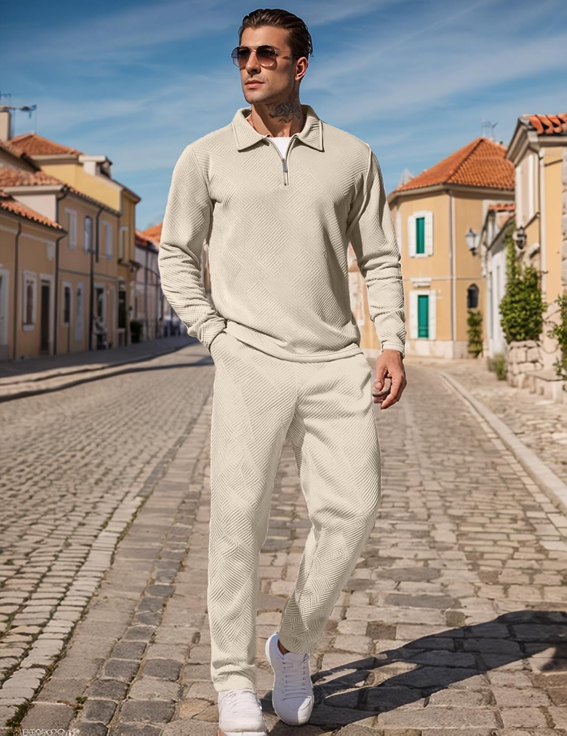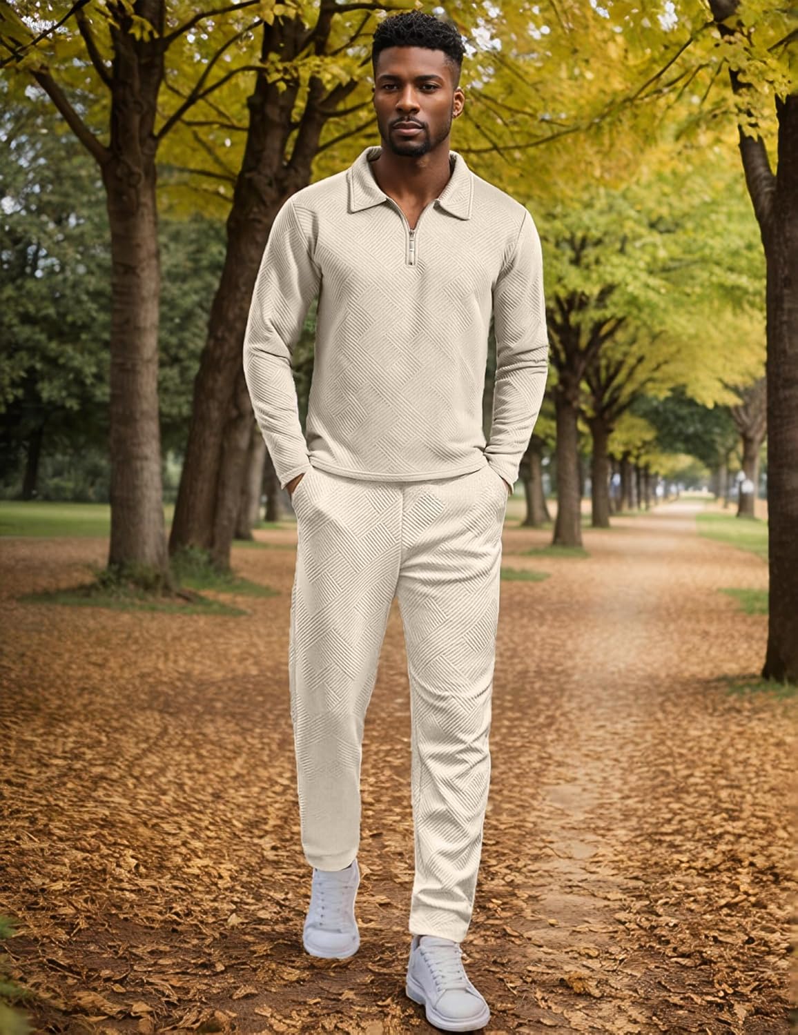 UOUA Mens 2 Piece Set Casual Outfits Polo Long Sleeve Shirt & Pants Tracksuit Loungewear Athletic Jogger Sweatsuit